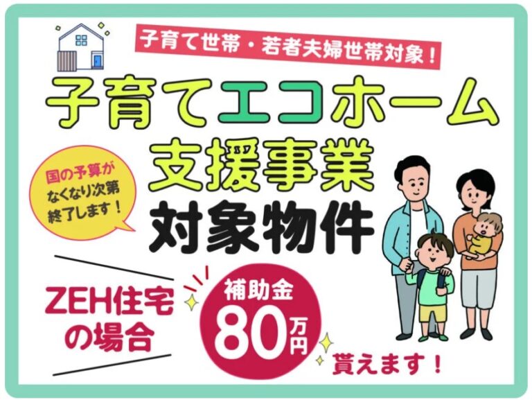 【子育てエコホーム補助金80万円対象】終了間近!お急ぎ下さい
