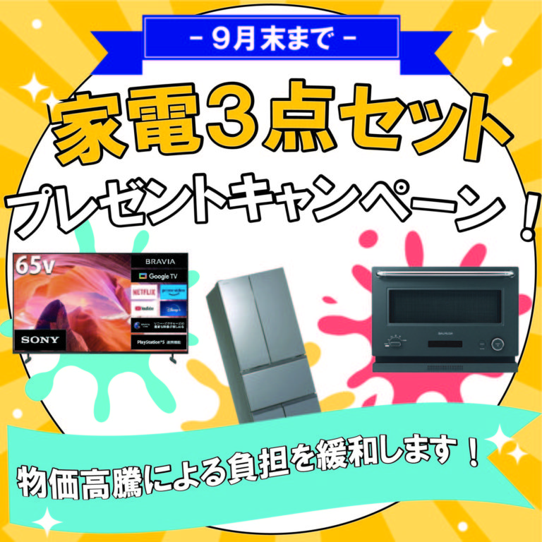 家電3点セットプレゼントキャンペーン開催しています!!