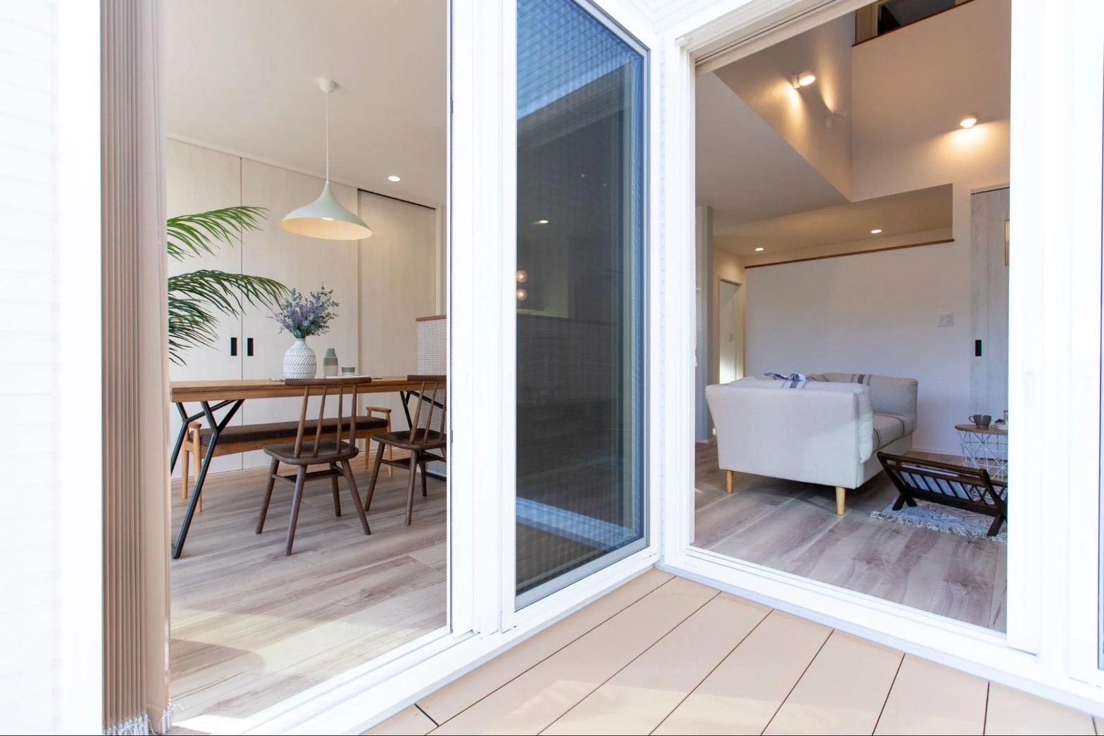 リビングとダイニング、和室、どの部屋からも中庭にアクセスできるのも魅力です。中庭にテラスやデッキを設ければ、リビングを拡張したような空間としても利用可能。バーベキューやティータイムなど、様々なシーンで活用できます。