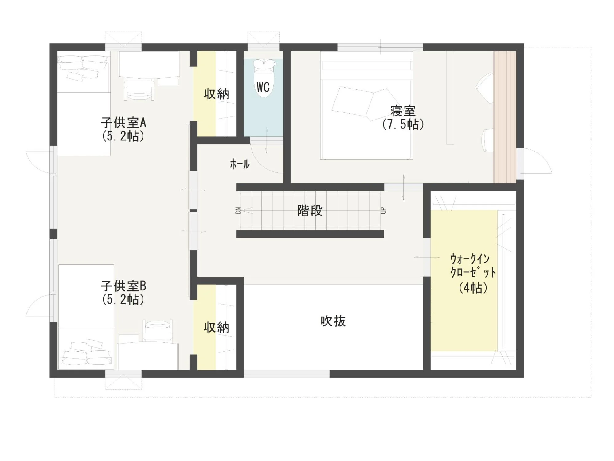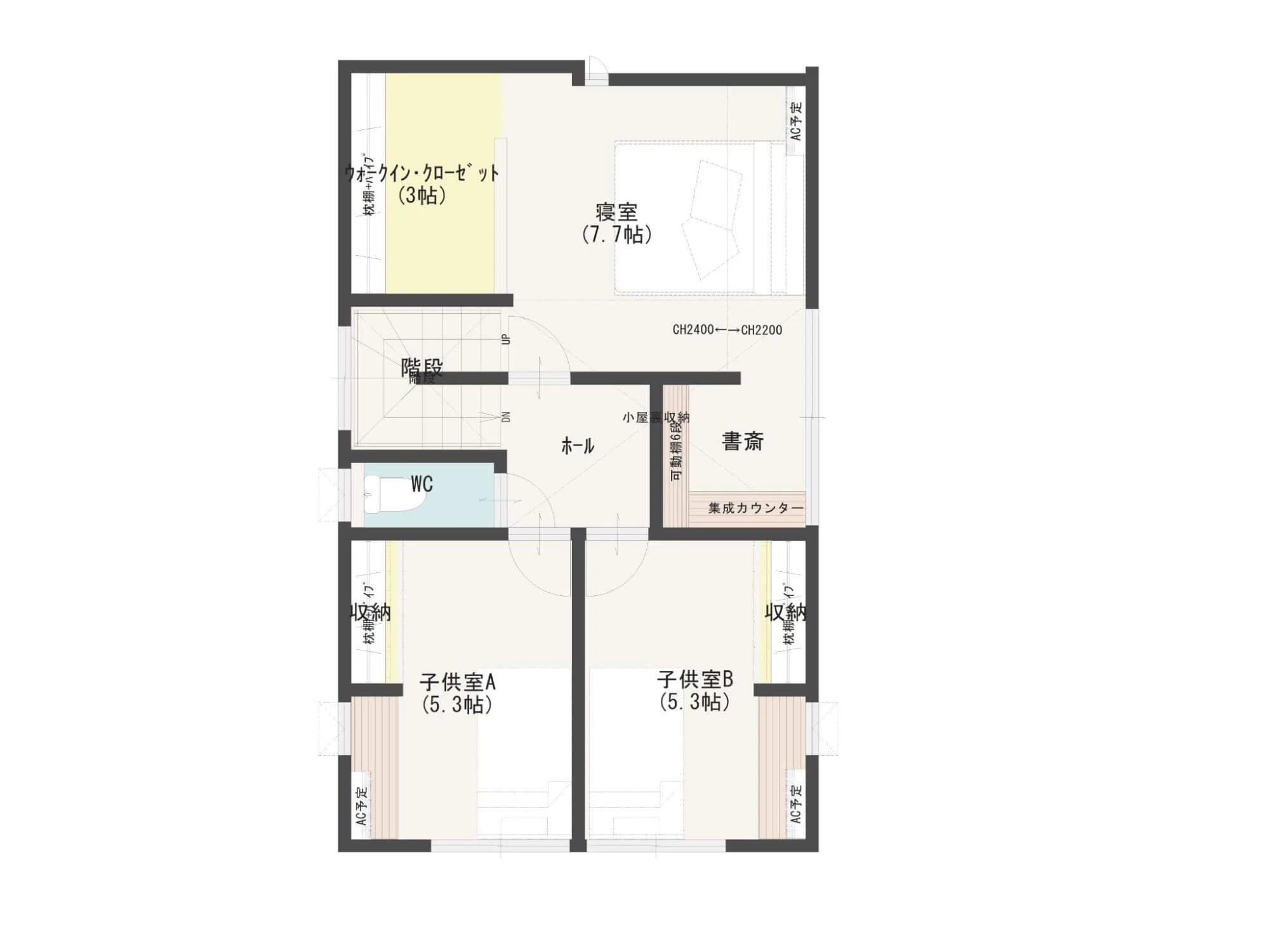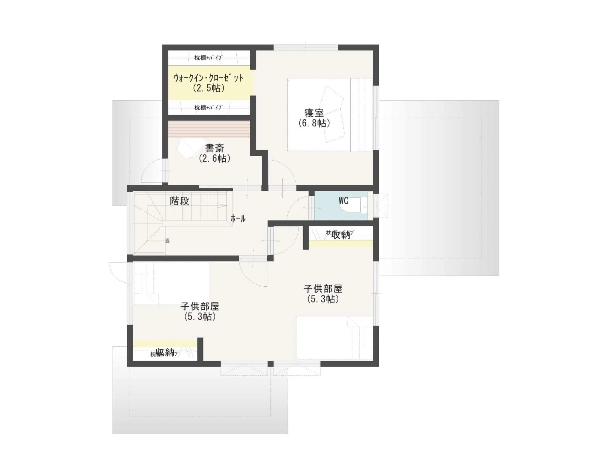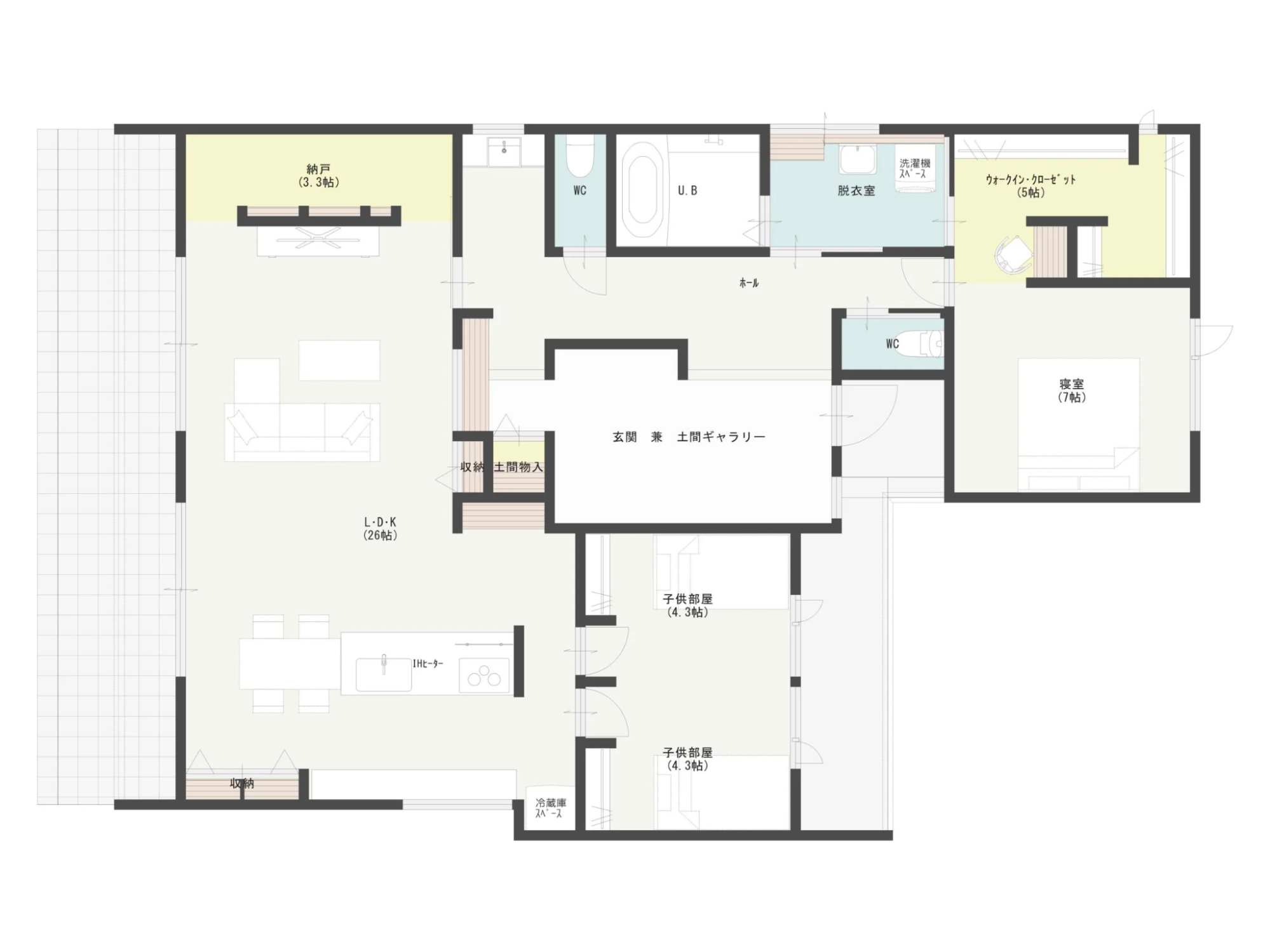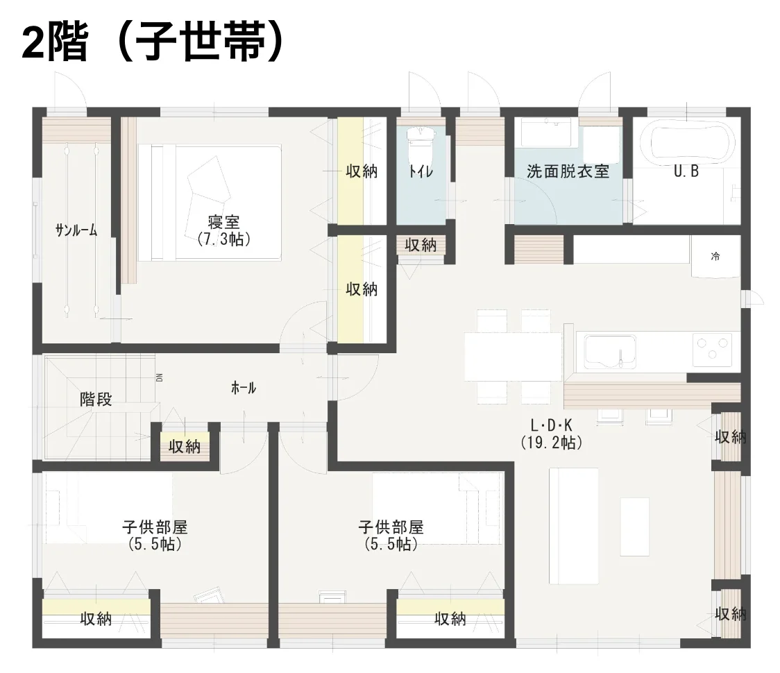 こちらは、3人暮らしを想定しつつ、将来の家族が増えた場合にも対応できる事例です。