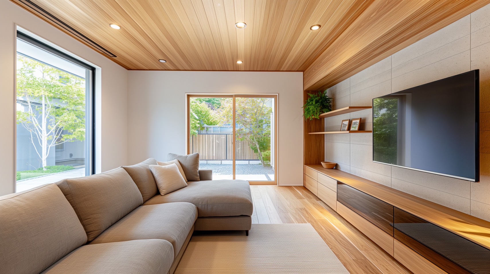 ジャパンディスタイルでは、自然素材を積極的に取り入れることがポイントです。木や漆喰、畳などの自然素材は、空間に温もりと落ち着きを与え、心地よい環境を作り出します。窓まわりには、竹や木製のブラインドを取り入れるのもおすすめです。