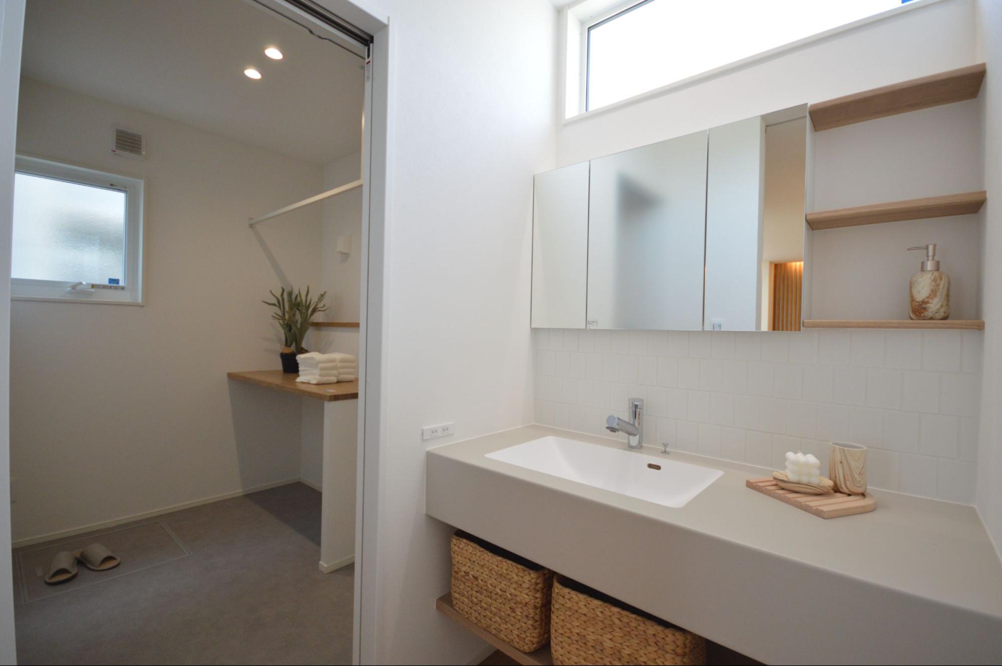 水回りは、洗面台やランドリールームを分離。それぞれのスペースを快適に利用できます。住む人の暮らしを豊かにする、機能的で美しいスタイルです。