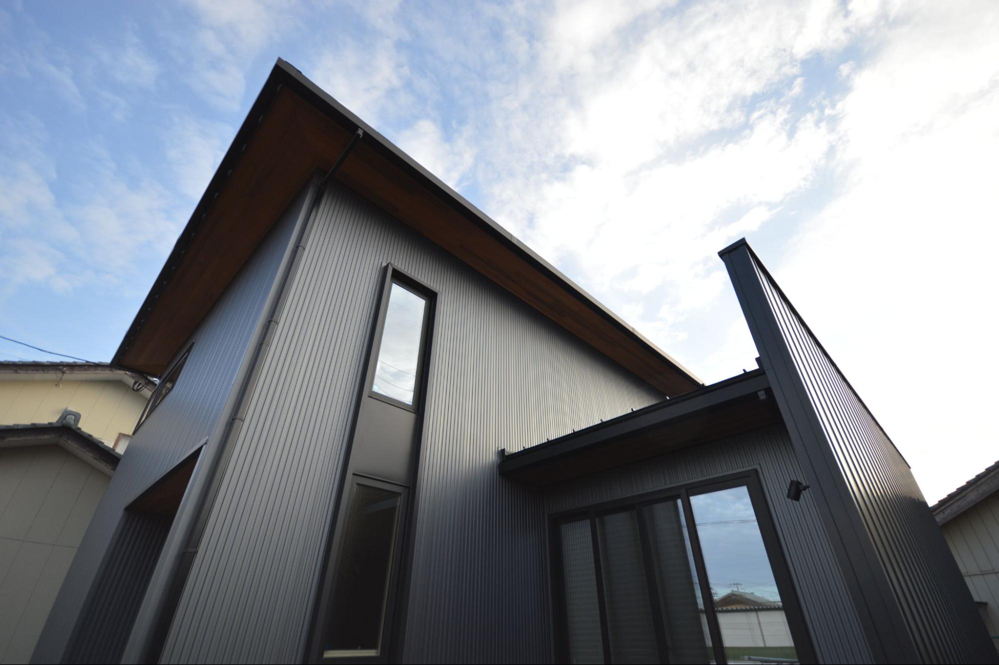 ジャパンディの建築は、外観よりも内観に特徴が現れる点が特徴です。こちらの事例はシンプルなキューブ型の外観に、ウッド調の素材を組み合わせることで、洗練された印象となっています。