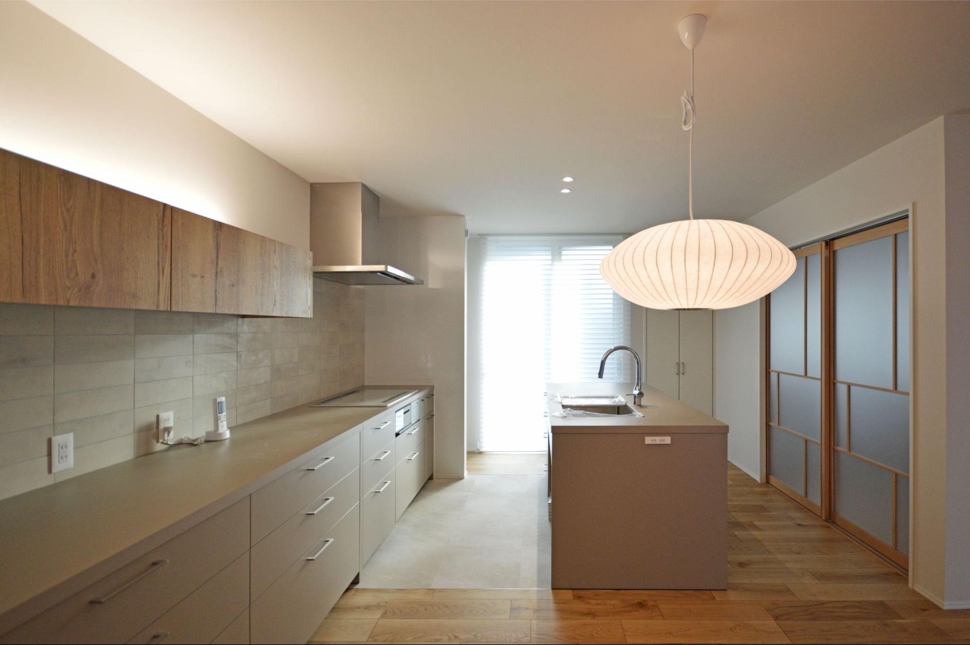 キッチンは、作業台を囲めるように配置し、料理が楽しくなる設計に。