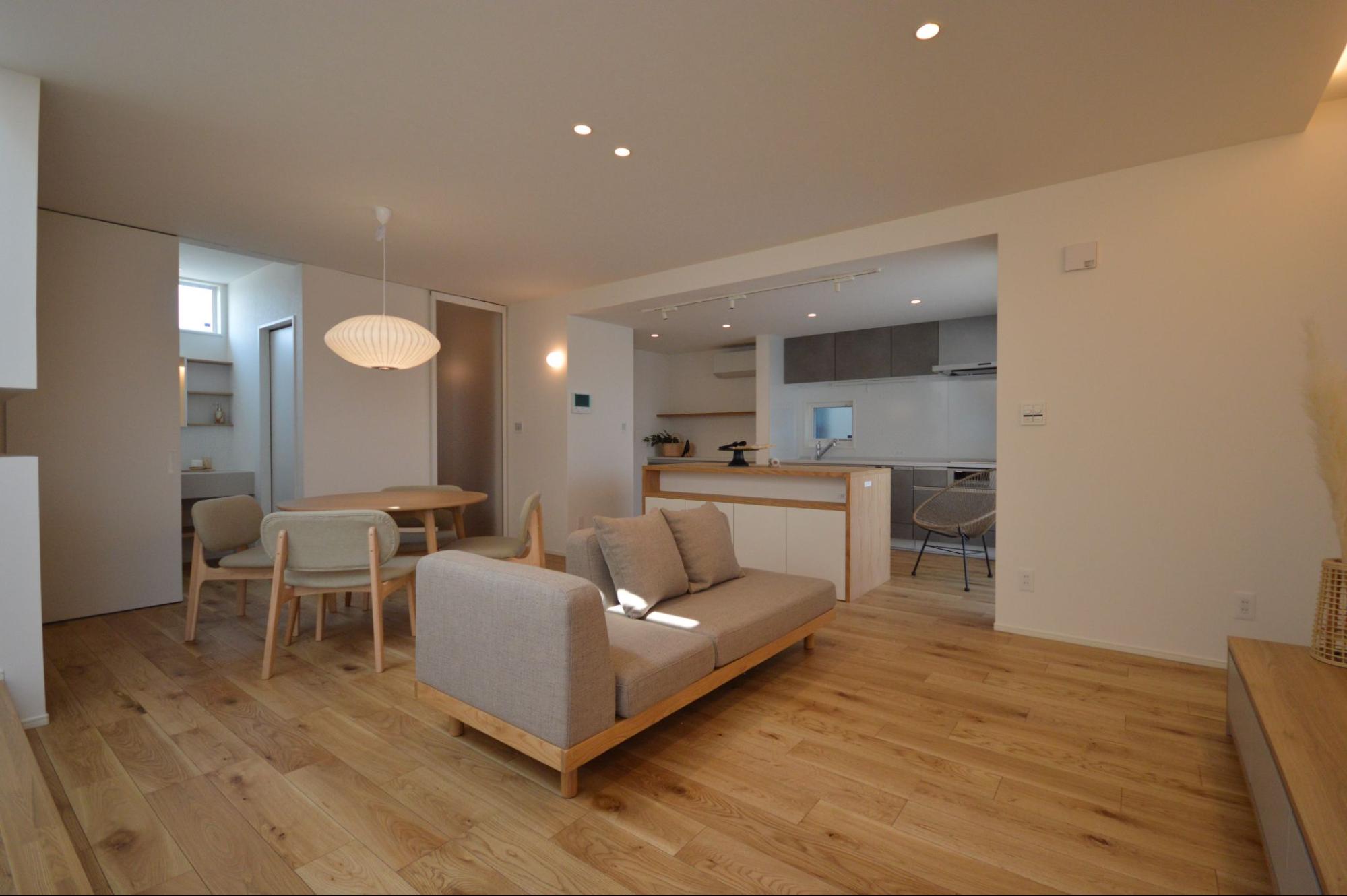 こちらの事例は、広々としたリビングで家族が一緒に過ごせる空間設計が特徴のジャパンディな住まいです。