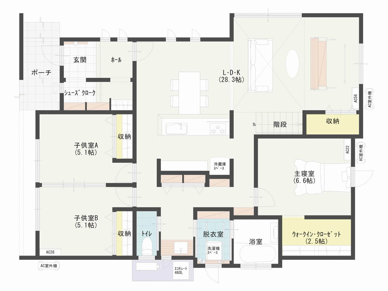 収納をバランス良く配置する