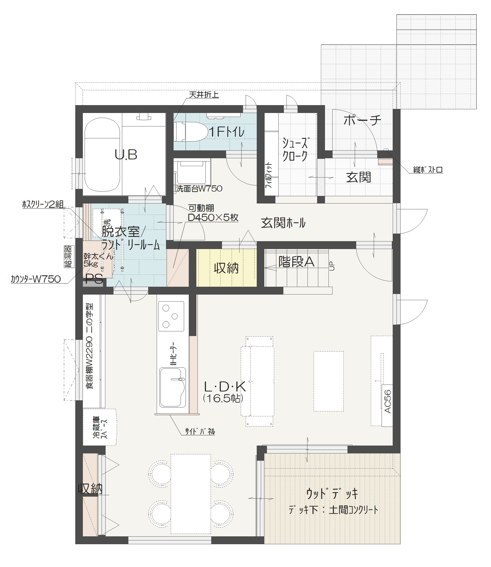 空間や造りをシンプルにまとめた事例です。物干しと収納が同じ空間で完了する水回りで、ストレスの少ない家事動線が実現します。