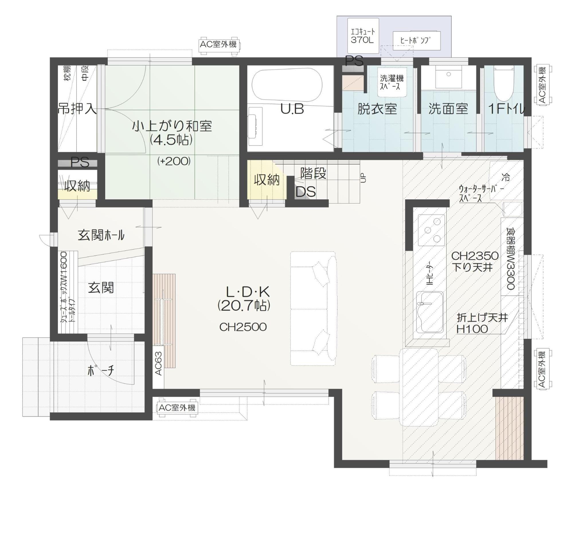 生活動線にムダがなく、ワンフロアで生活の全てが完結します。