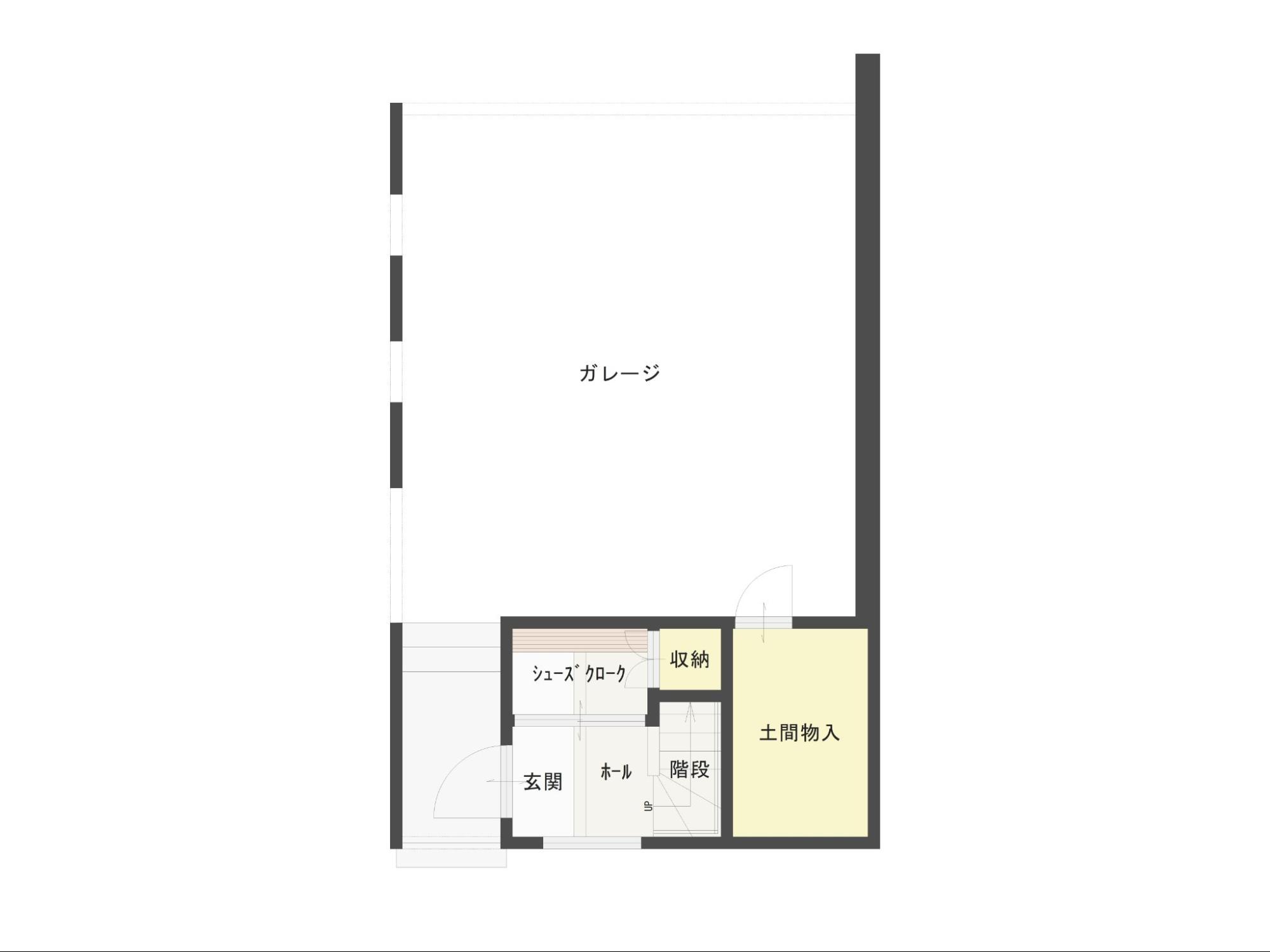 一階に土間スペースを設けた、3階建ての間取りです。玄関周辺には収納スペースを設けました。
