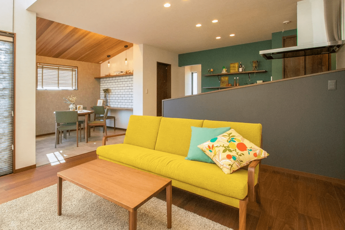 LDKには和室を設け、家族みんなでくつろげる広々とした住環境を実現しました。屋根の高い部分を利用したスキップフロアも設け、開放感あふれる快適な住まいに仕上げています。