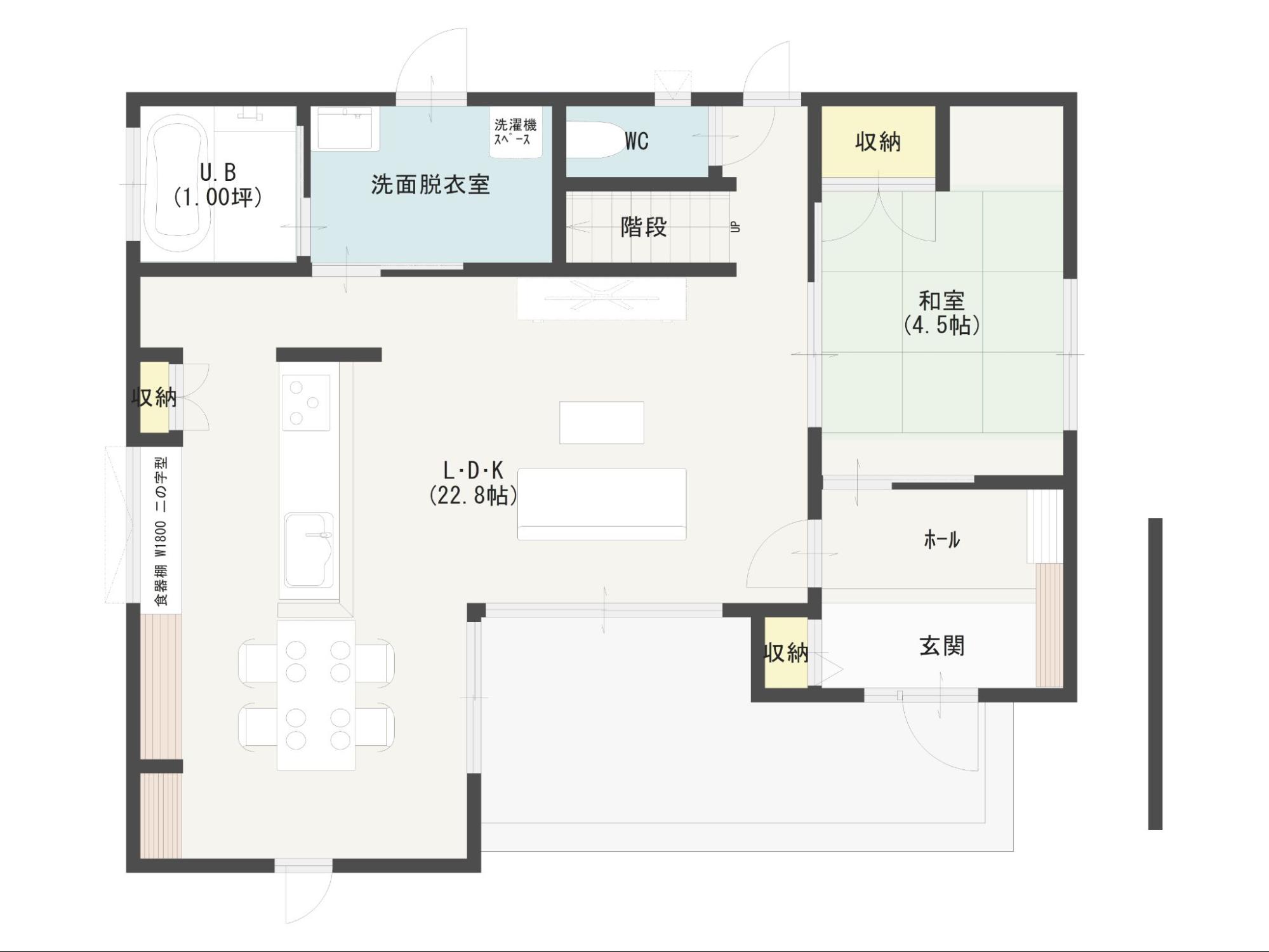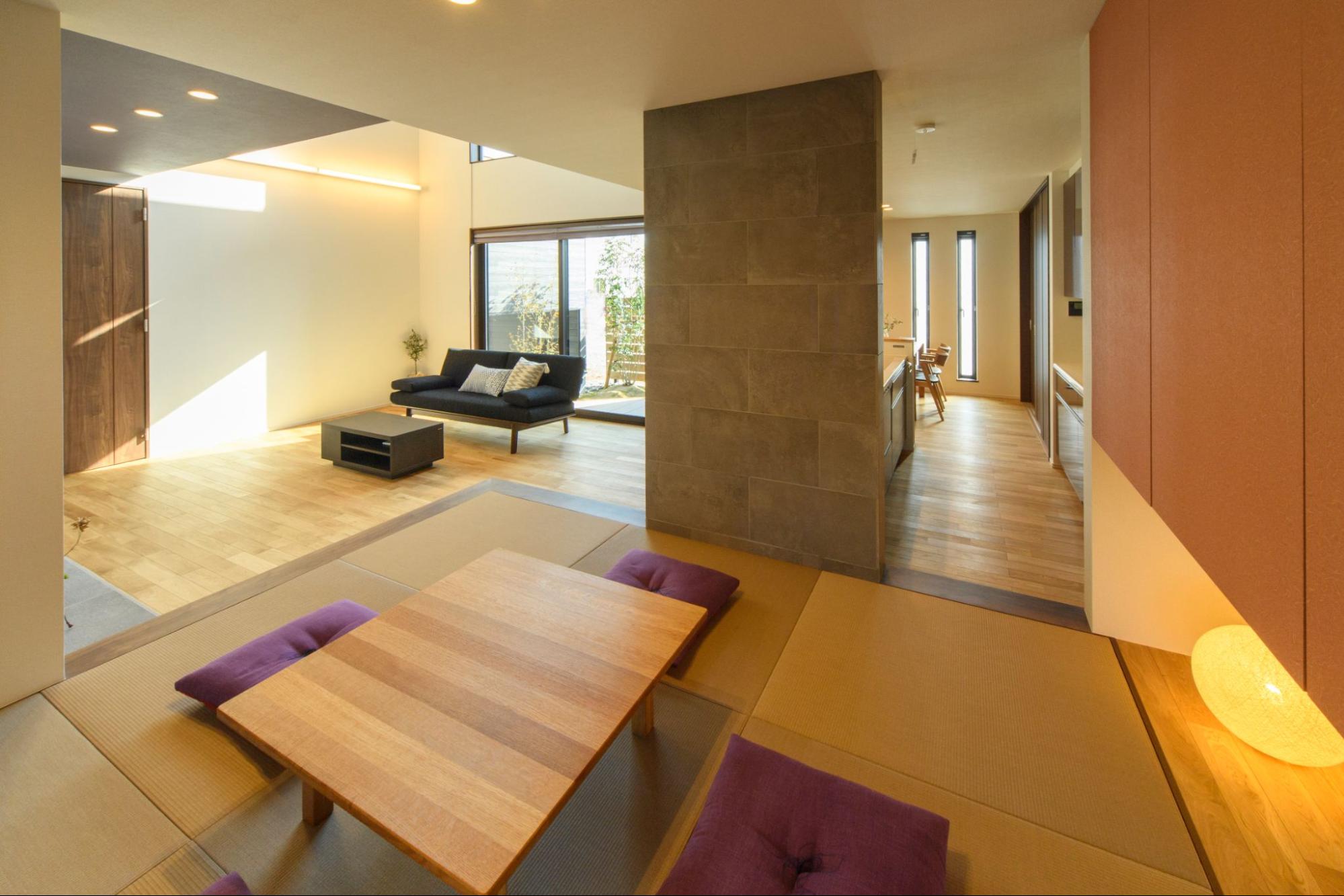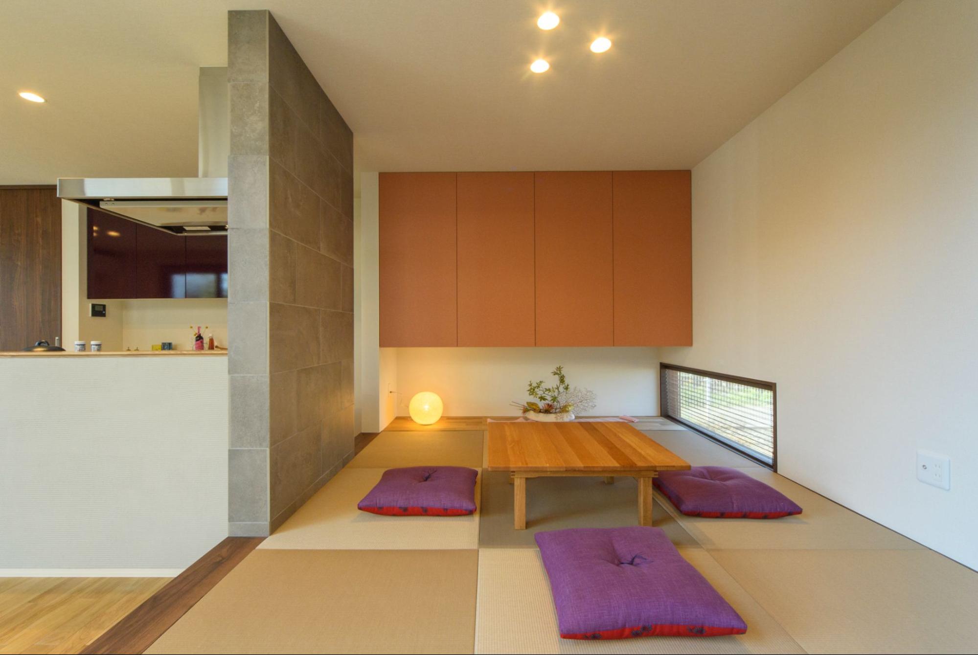 こちらは、キッチン横に和室を配置した事例です。従来の和室のイメージを覆す、斬新な間取りとなっています。