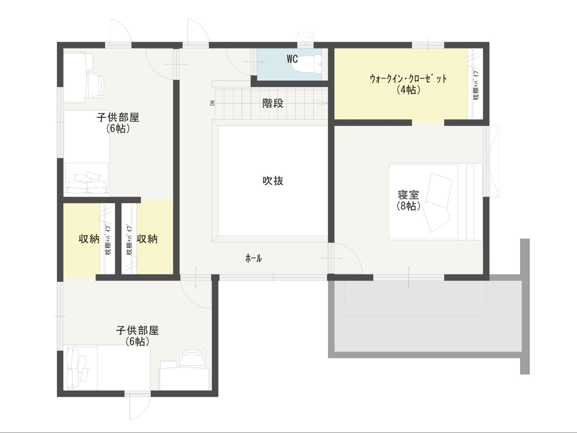 キッチン横の和室を配置したことで、単なる寝室や客間としてだけでなく色々な用途として活用できる、柔軟性の高い空間です。
