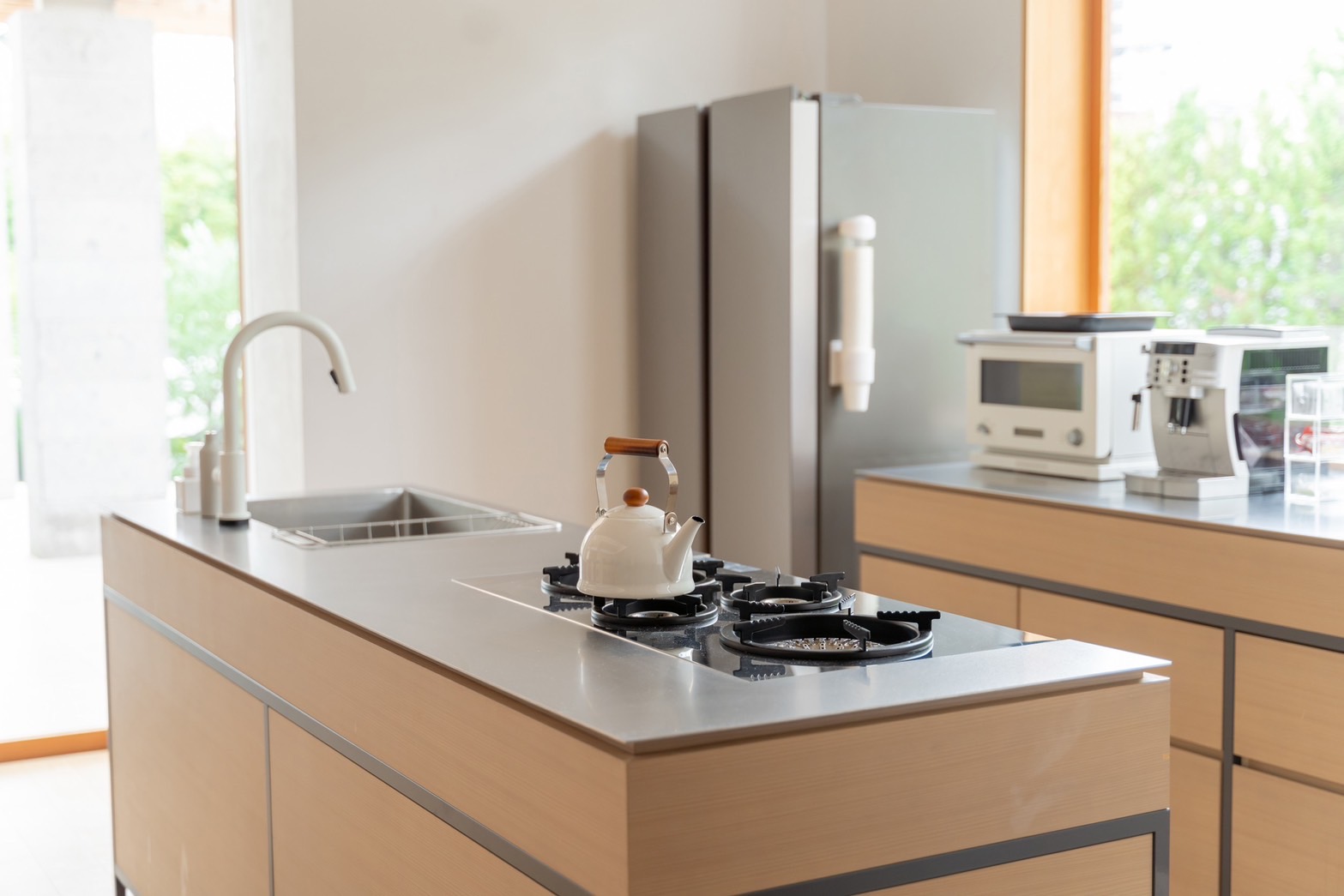 アイランドキッチンは空間全体が開放的に感じられる点がメリットです。壁から離れて独立しているため、リビングやダイニングとの一体感も生まれます。