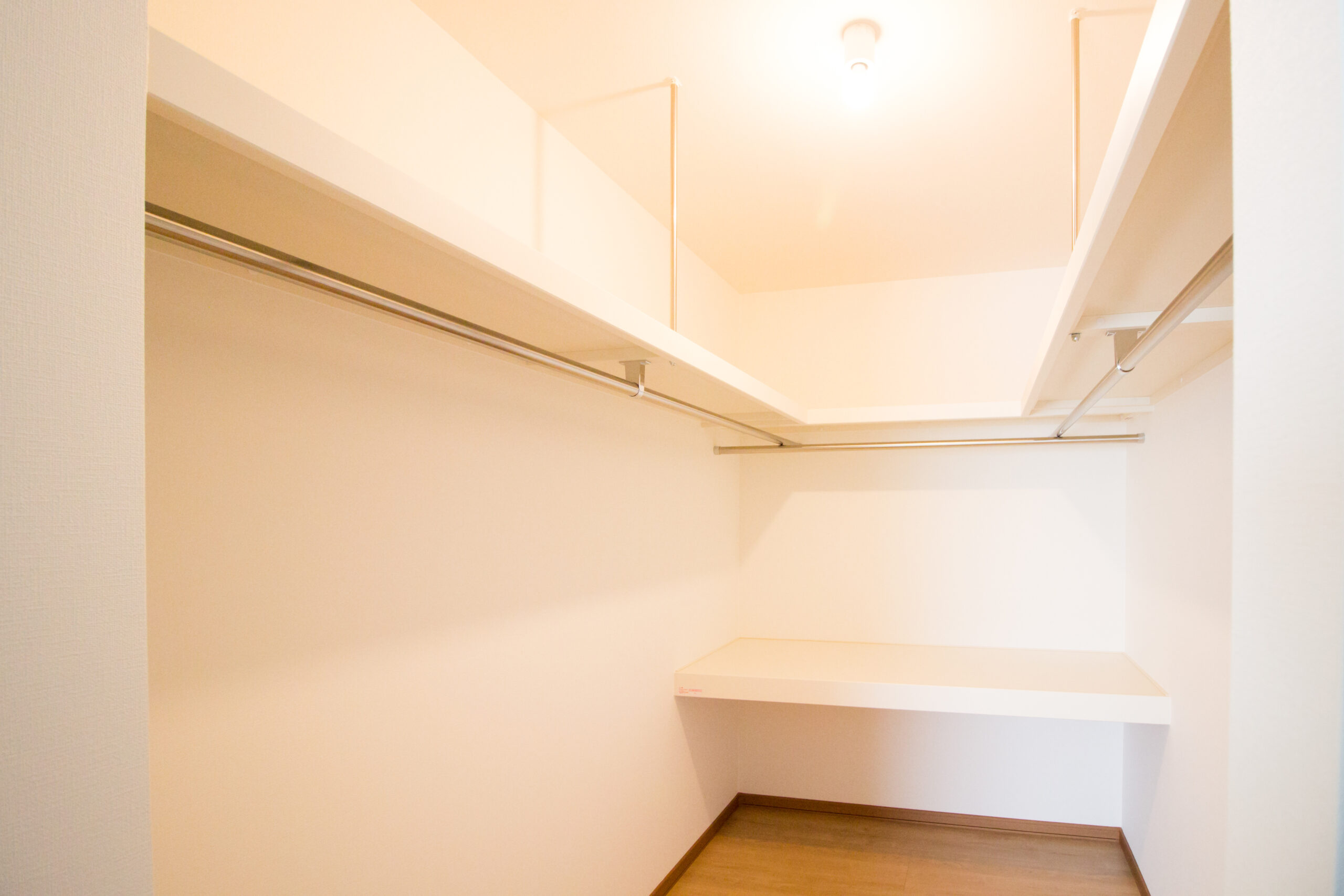 ウォークインクローゼットは大容量で、有孔板(※)を活用した壁面収納も可能。片づけやすさと暮らしやすさを両立した、理想的な住まいです。