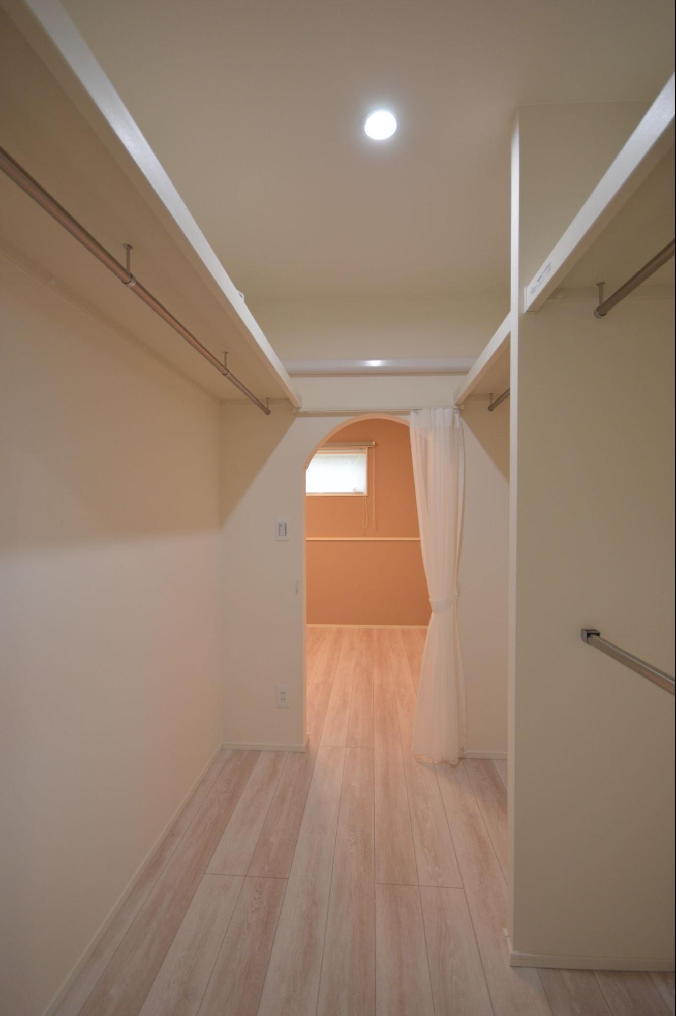 LDKに隣接する3.5帖のファミリークロークを設け、家族全員の衣類や日用品をたっぷり収納できる空間を実現。