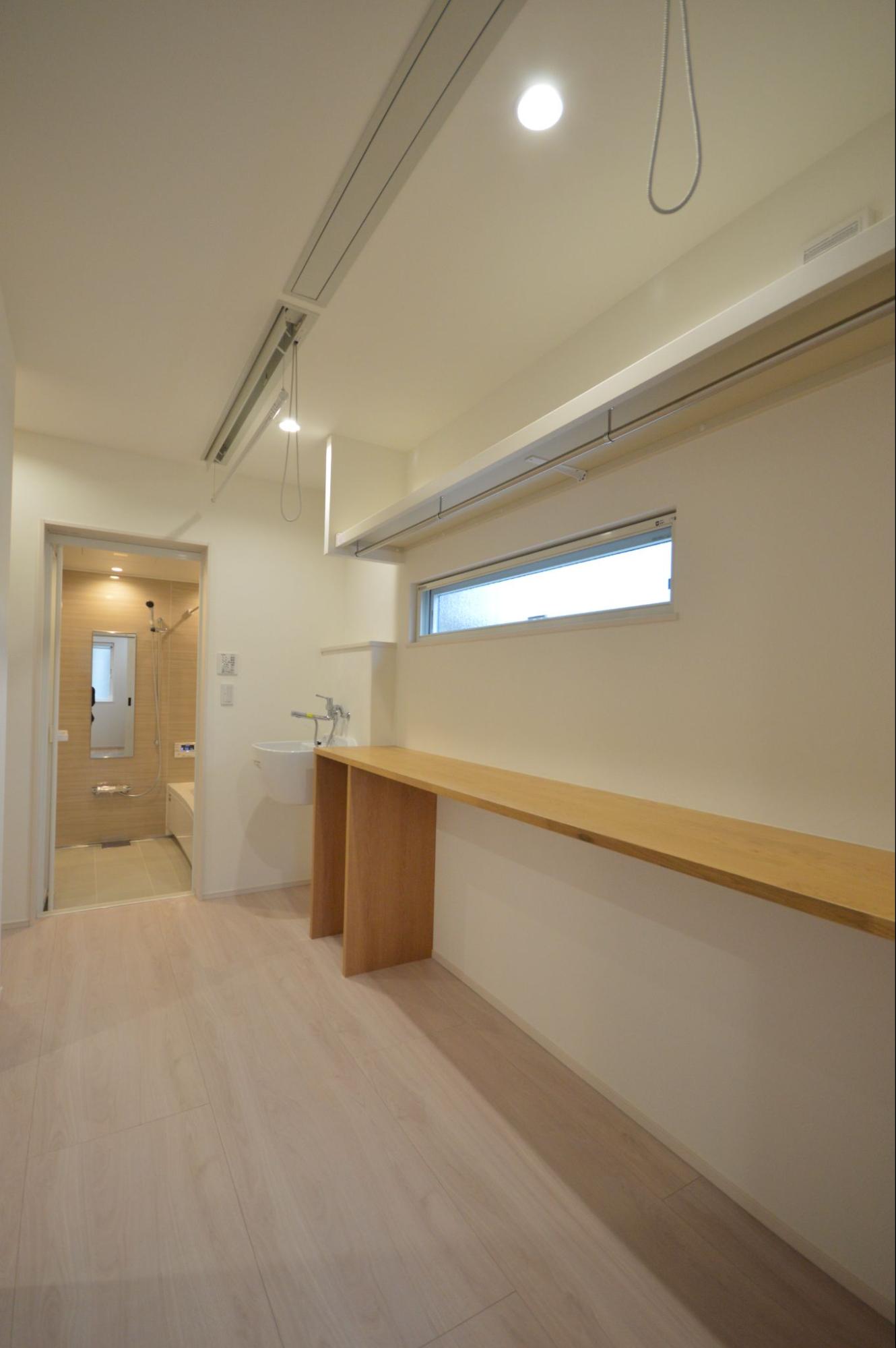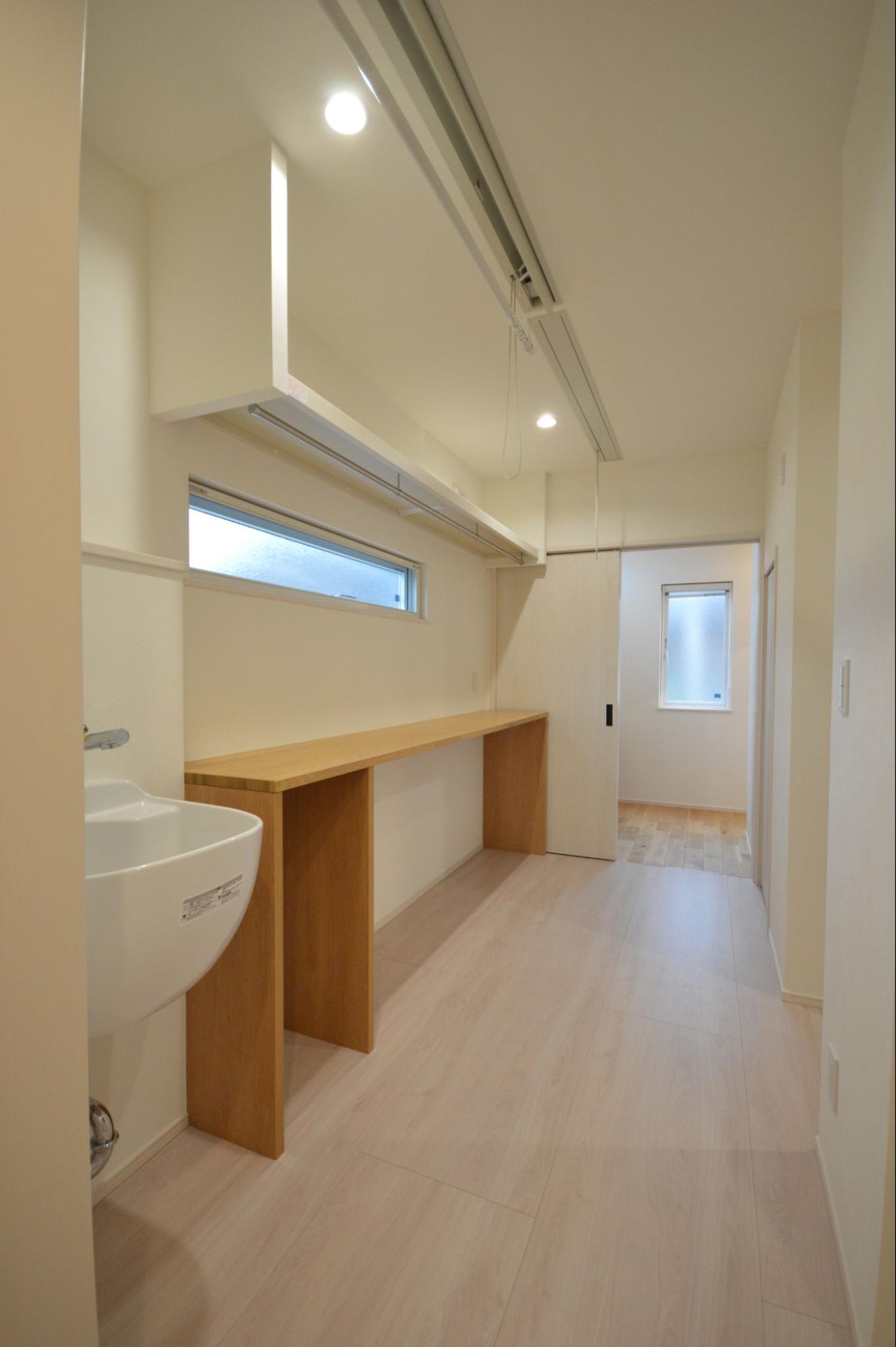汚れた衣類や靴をスロップシンクで洗ってから、そのまま「干す・たたむ・収納する」を同じ空間で行えるので、家事動線が大幅に短縮。