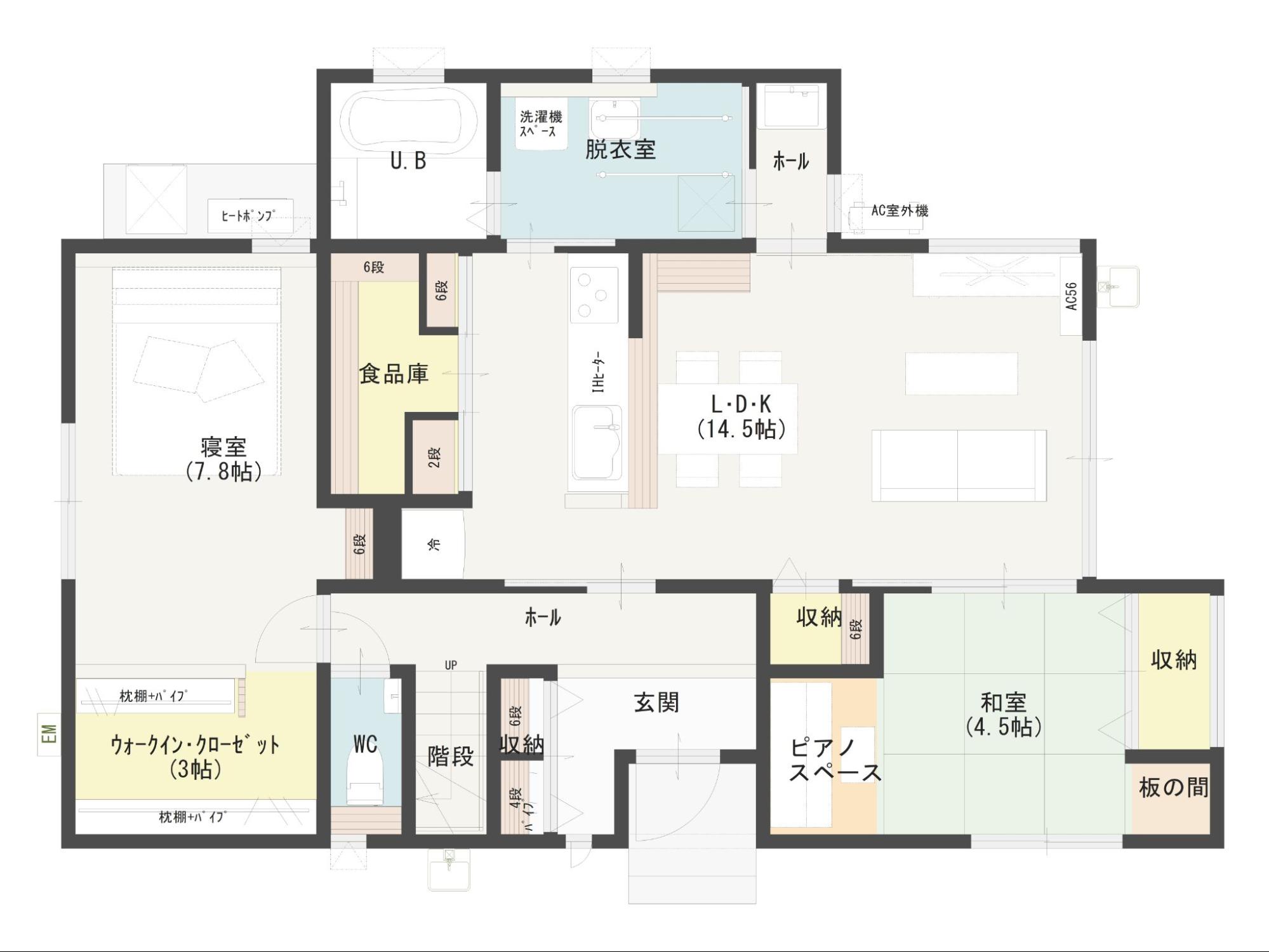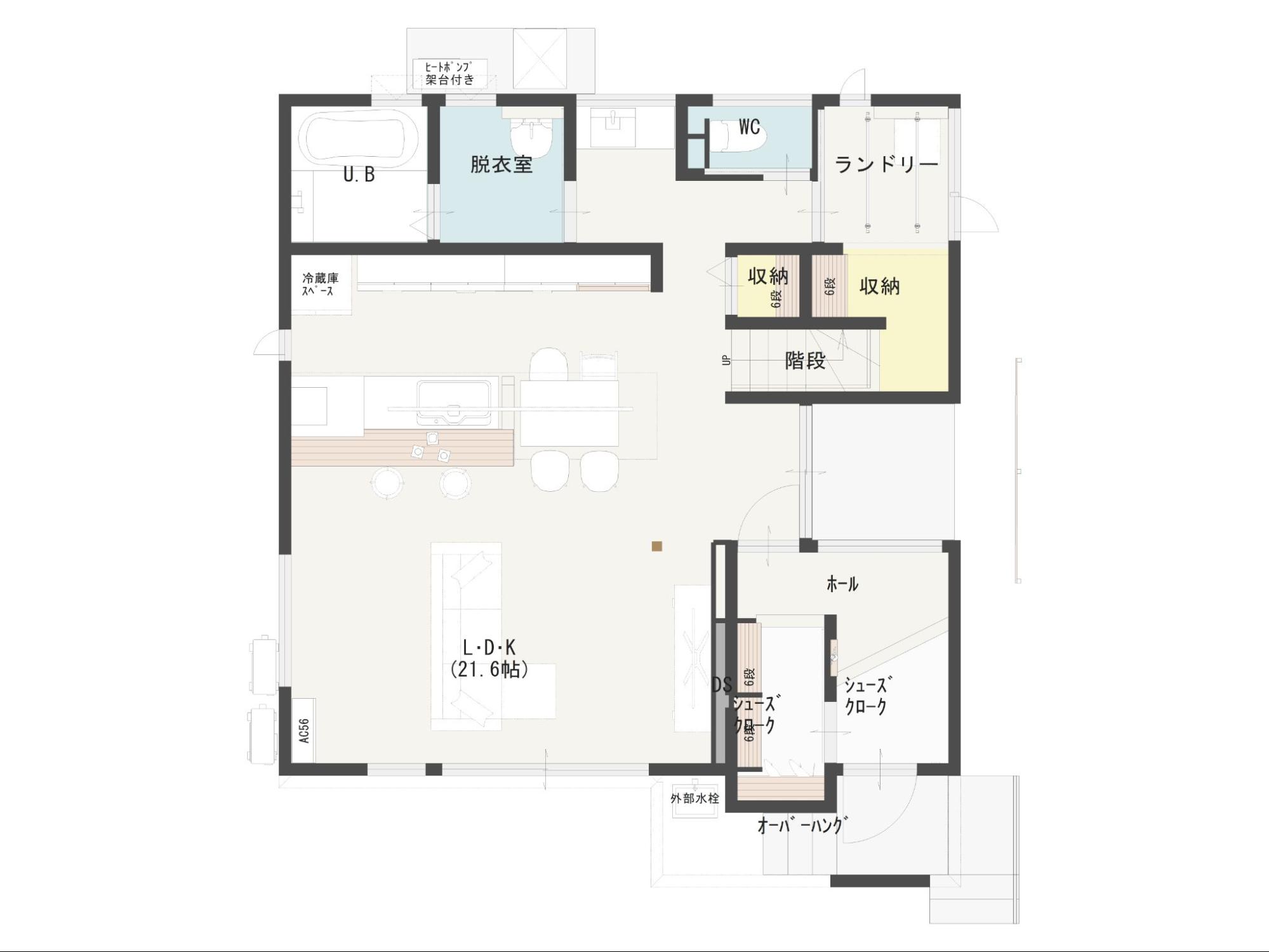 忙しい日々の洗濯作業が効率的になるのはもちろん、部屋全体がすっきり片付けやすい間取りです。