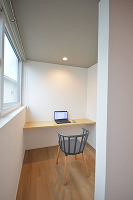 オープンスペース型のテレワーク部屋は、リビングや階段の踊り場など、本来書斎ではない空間を有効活用する間取りです。