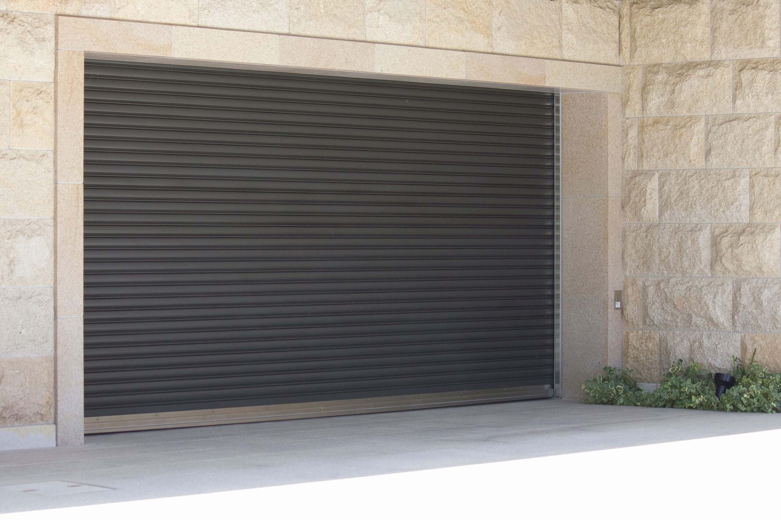 電動オーバースライダー方式のシャッターで意匠性が高く、開閉音が静か。巻き取り式のシャッターは手動タイプもあるので、使い方や予算で選ぶことも可能です。