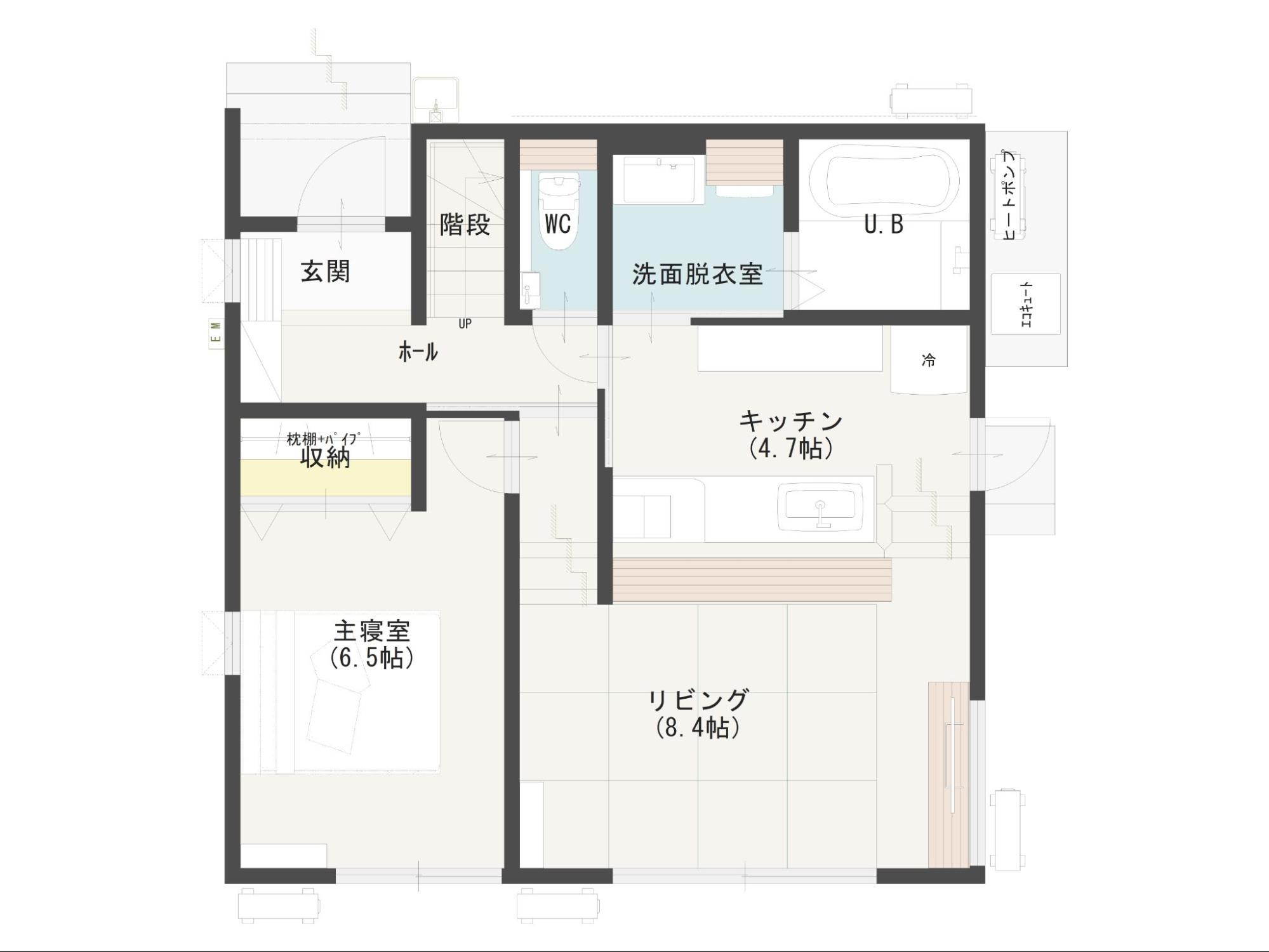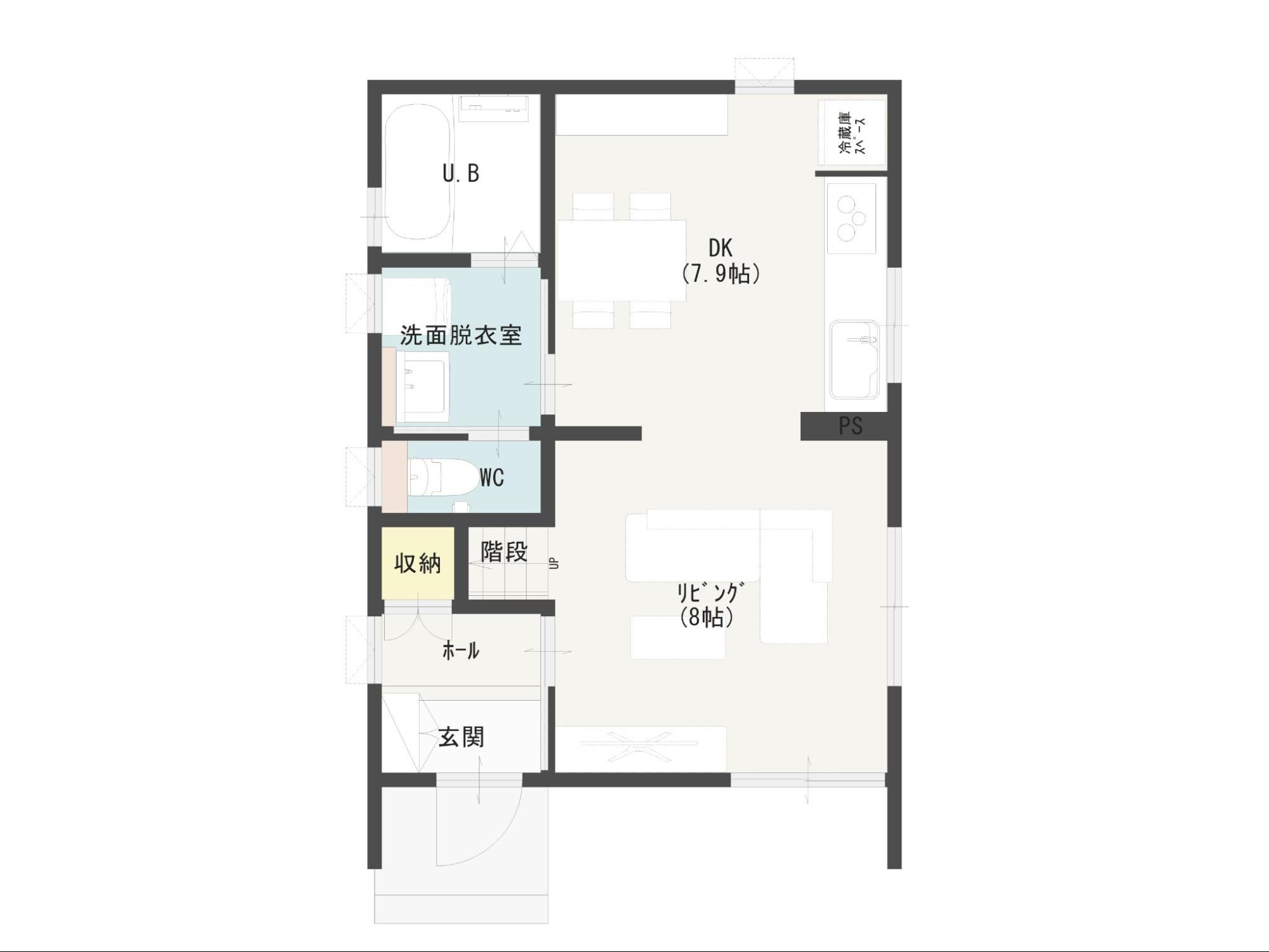 - 1階の玄関・水回りをコンパクトに集約