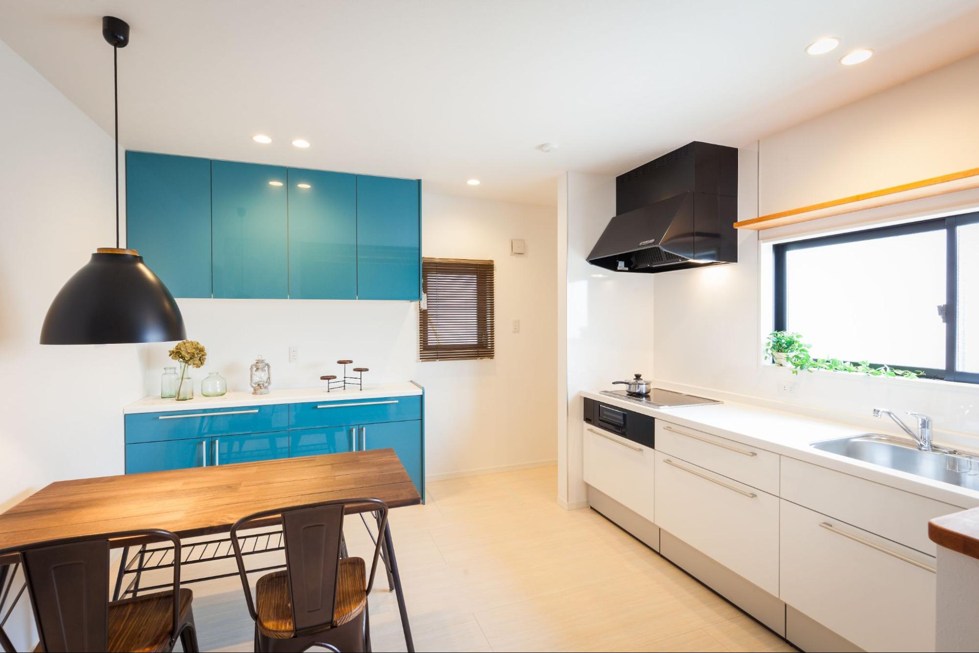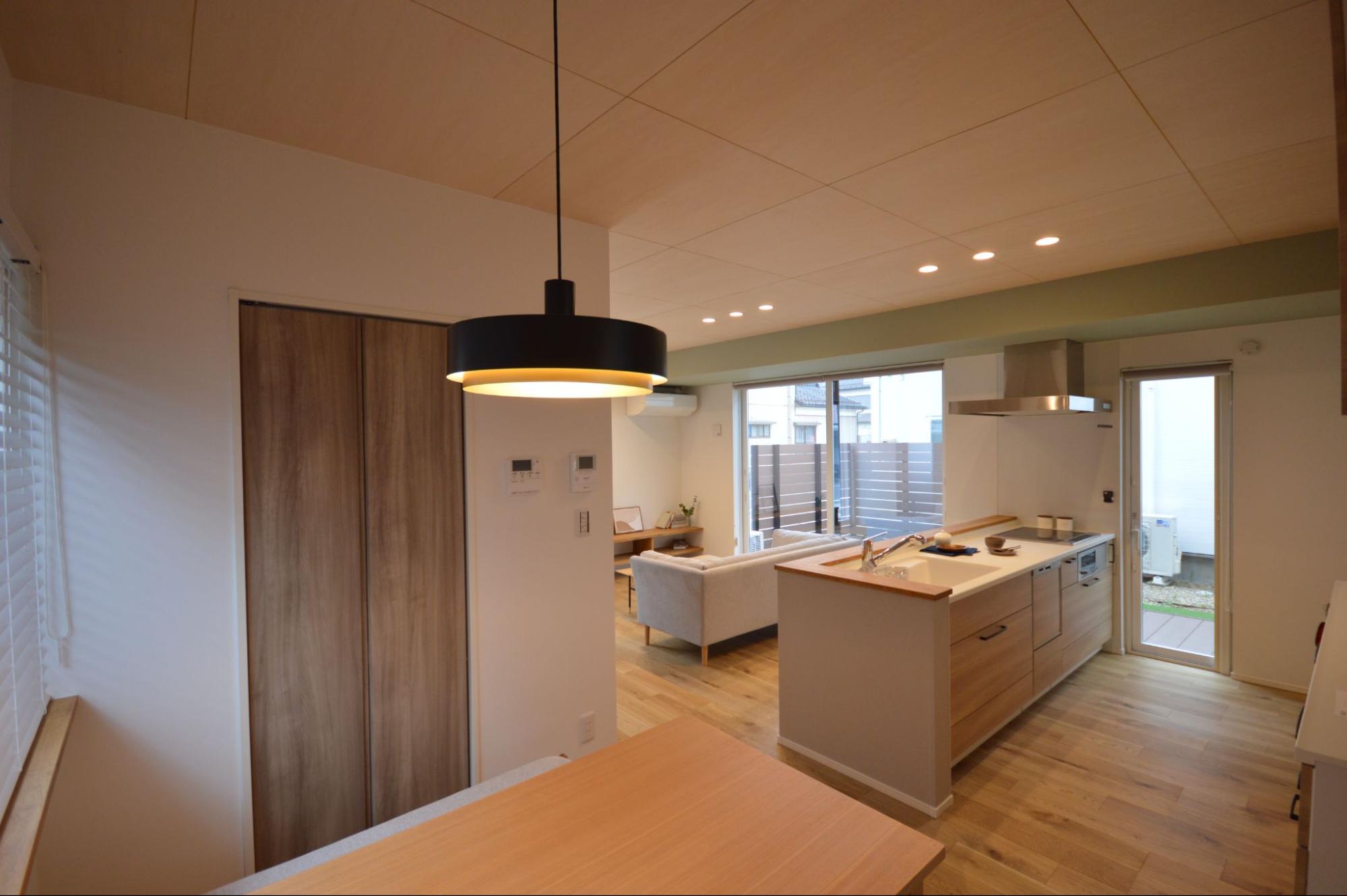 限られた敷地でも家族4人が快適に暮らせるよう、スペースを有効活用した事例です。壁付けキッチンを採用することで、限られた面積でダイニングキッチンを広々と確保。効率的な間取り設計により、動線の良い家事スペースや十分な収納も実現しました。全体をシンプルなデザインでまとめつつ、機能性を損なわない工夫が光る住まいです。