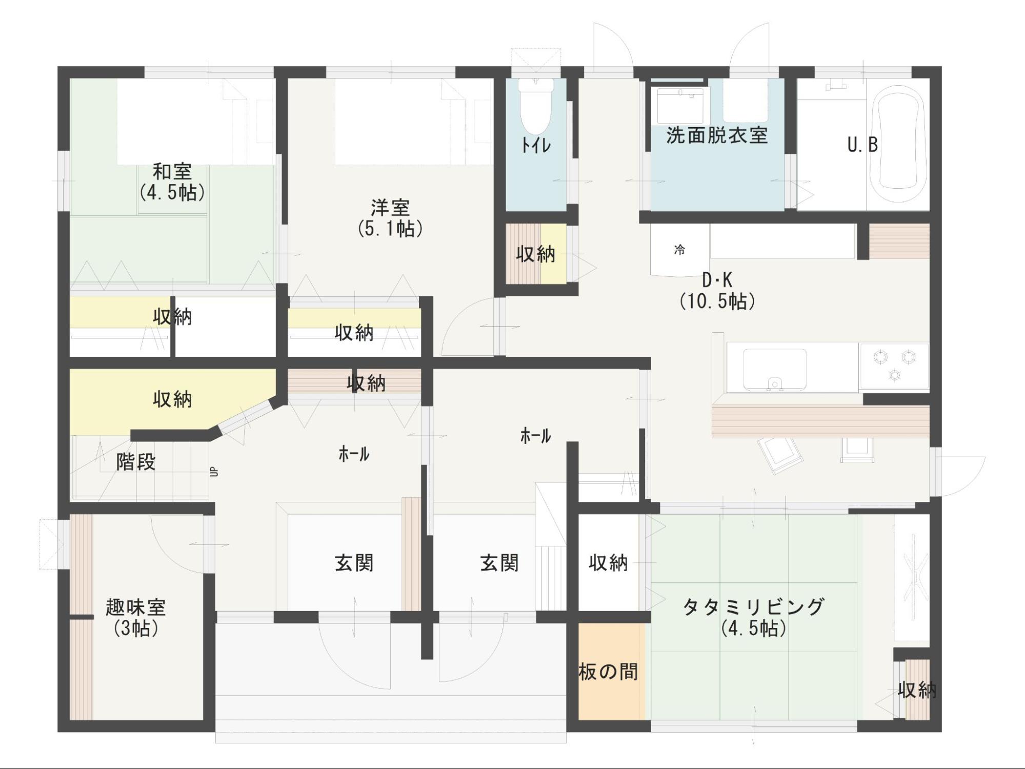 玄関を2つ設けて上下で暮らす間取り