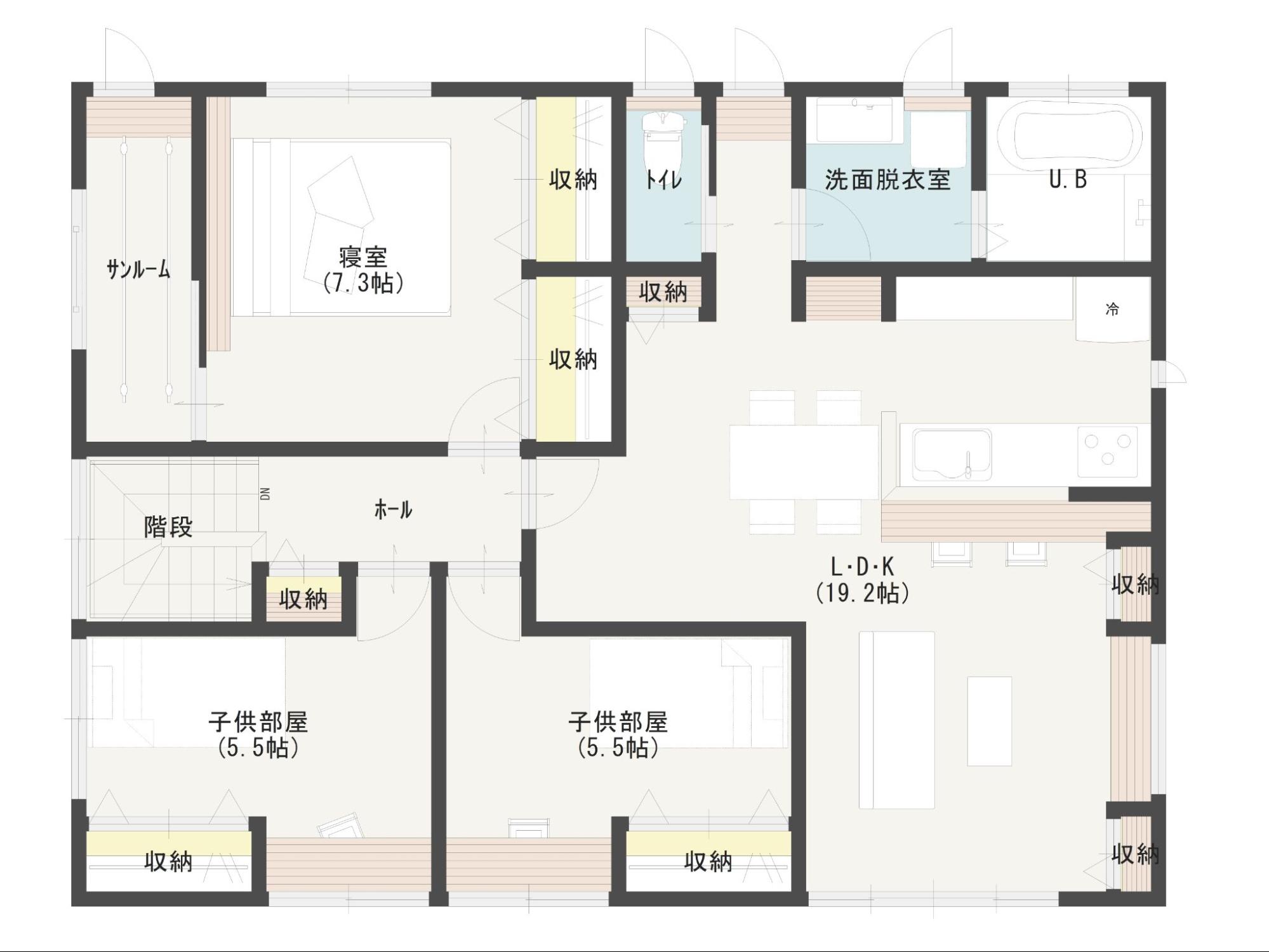 家族の人数が多いほど、洗濯物や日用品などの収納スペースも必要になるでしょう。子供部屋を設けたい場合は、6帖(約9.72㎡)程度の広さの確保が必要です。