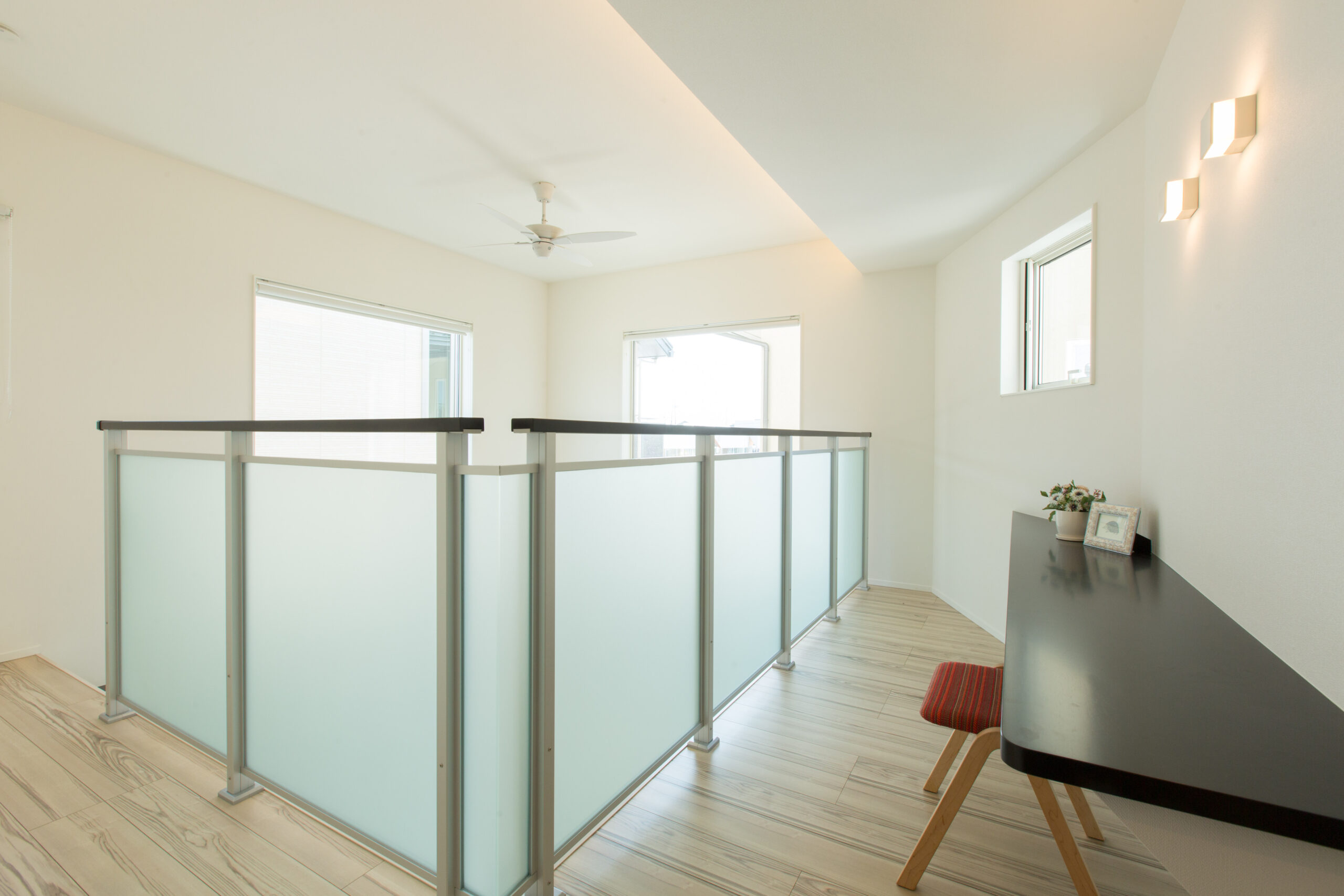 2階のホールには、スタディスペースを設けて快適に過ごせる空間に。温度差が抑えられたことで、家全体が居心地の良い環境が実現しました。