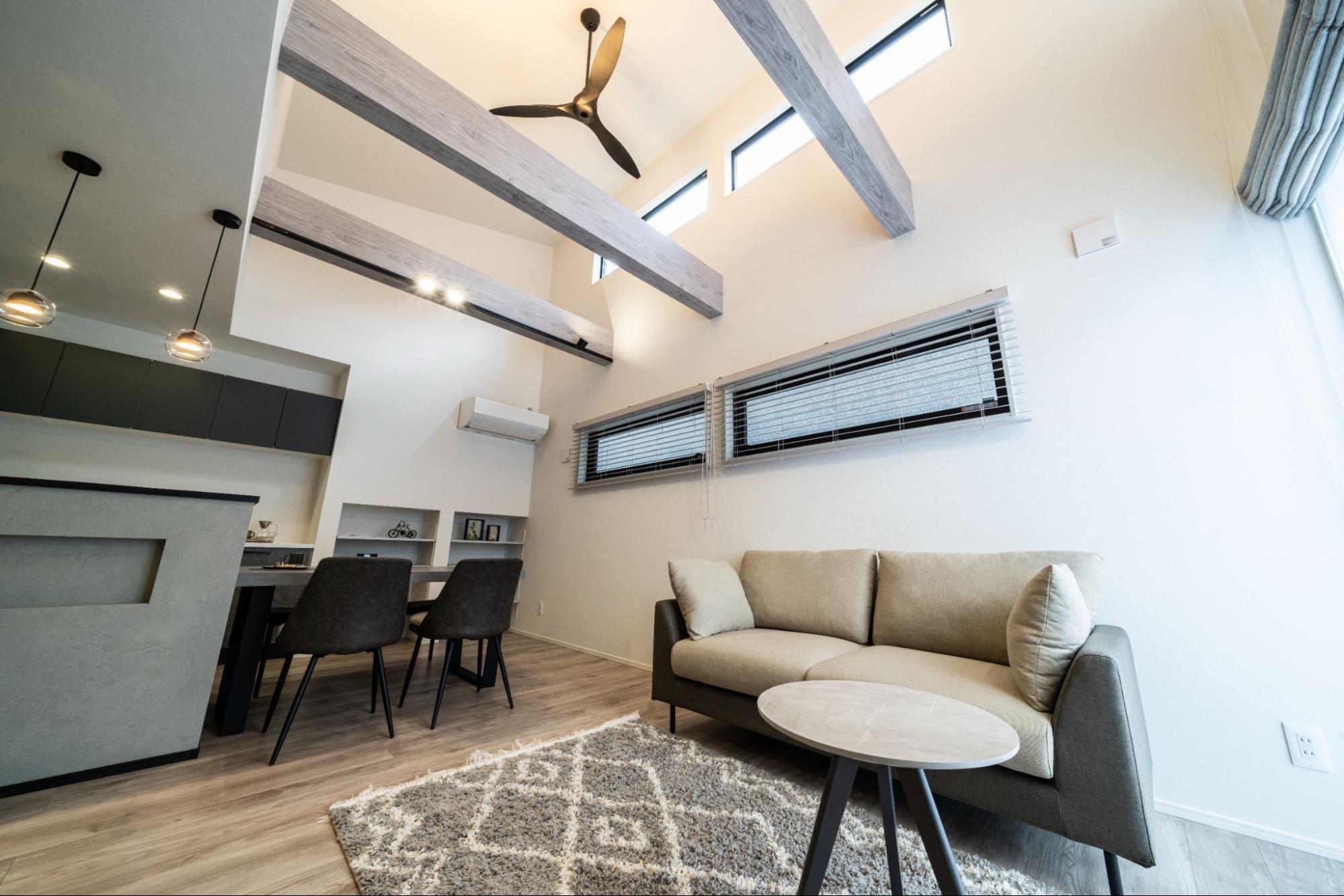 内装に高断熱を用い、吹抜け上にはシーリングファンを活用したことで、暖房効率が大幅にアップ。吹抜けのあっても、1階と2階の温度差がなくなり、家全体が均等に暖かく保たれたつくりになっています。