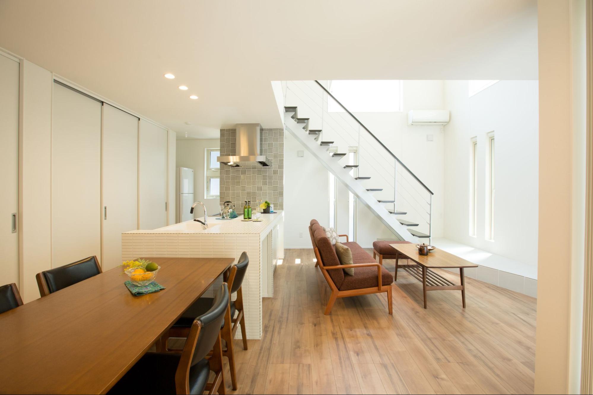 リビングやキッチン、和室などが繋がっていて熱効率もスムーズ。室内全体の温度管理がしやすく、快適な室内環境になっています。