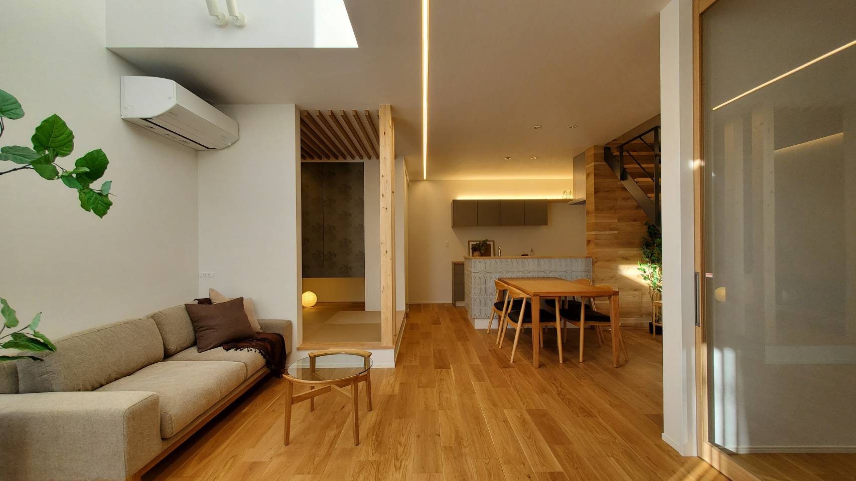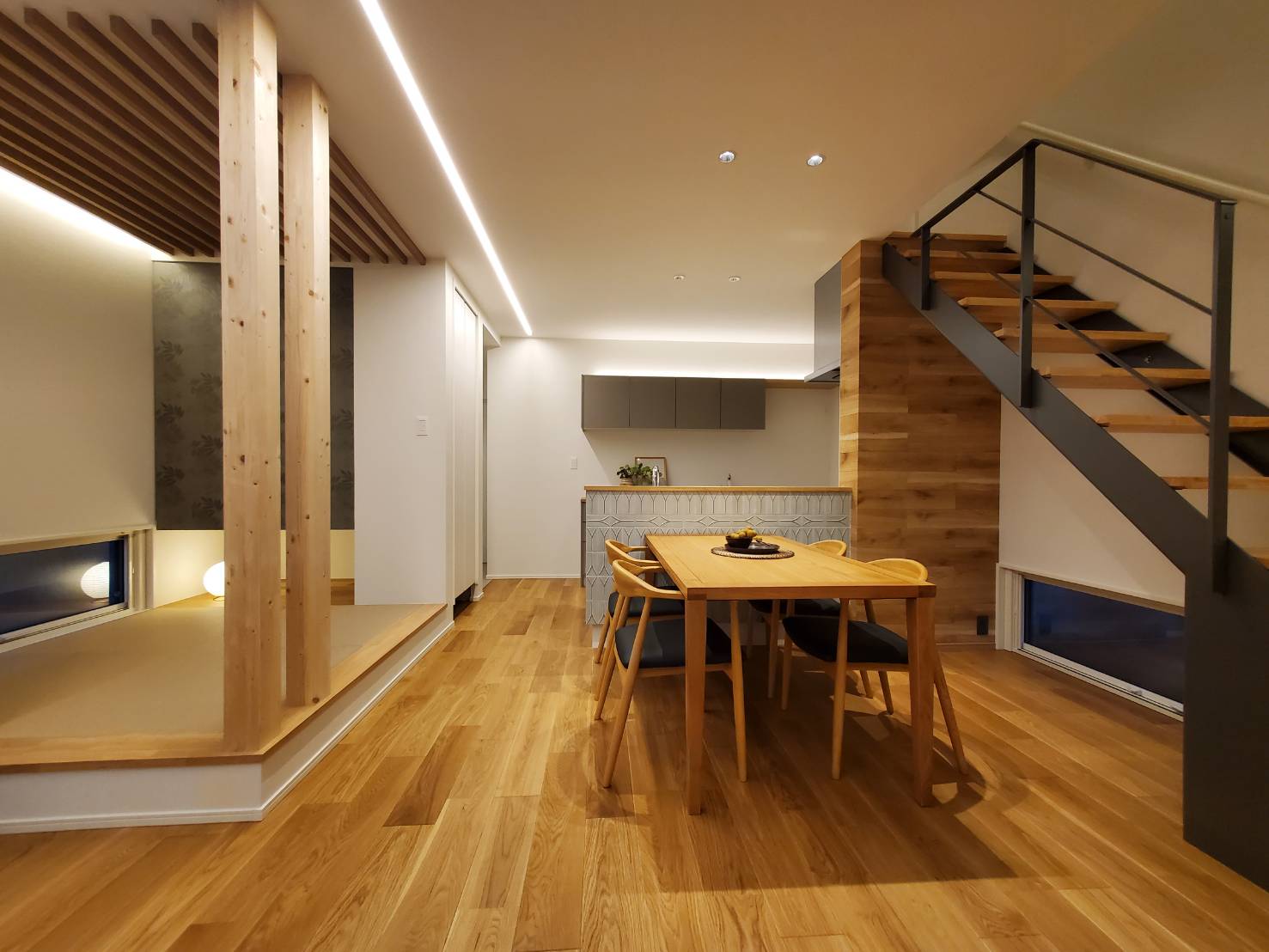 ダイニングは奥行きがあり、キッチンとの動線もスムーズ。小上がりの和室ではリラックスしたひとときを過ごせます。
