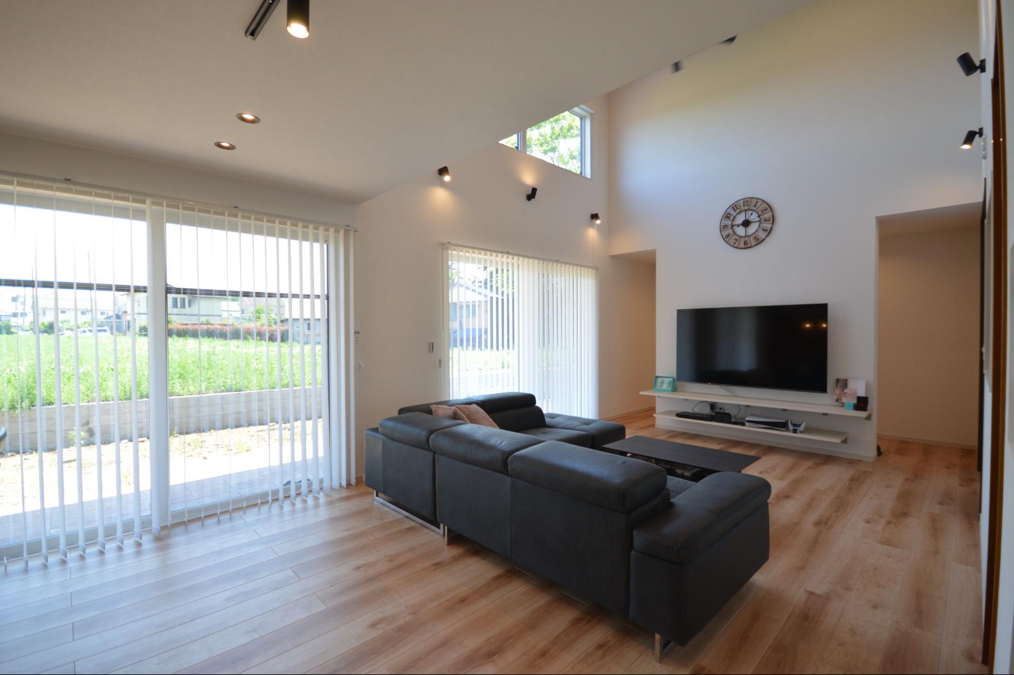 室内に入ると勾配天井が空間を縦に広げ、実際の面積以上の開放感を感じられます。