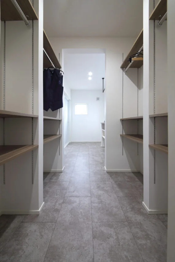 1階には一人ひとりのクローゼットを設け、帰宅後すぐに荷物をしまえる工夫も。片付けの習慣が自然と身につきます。