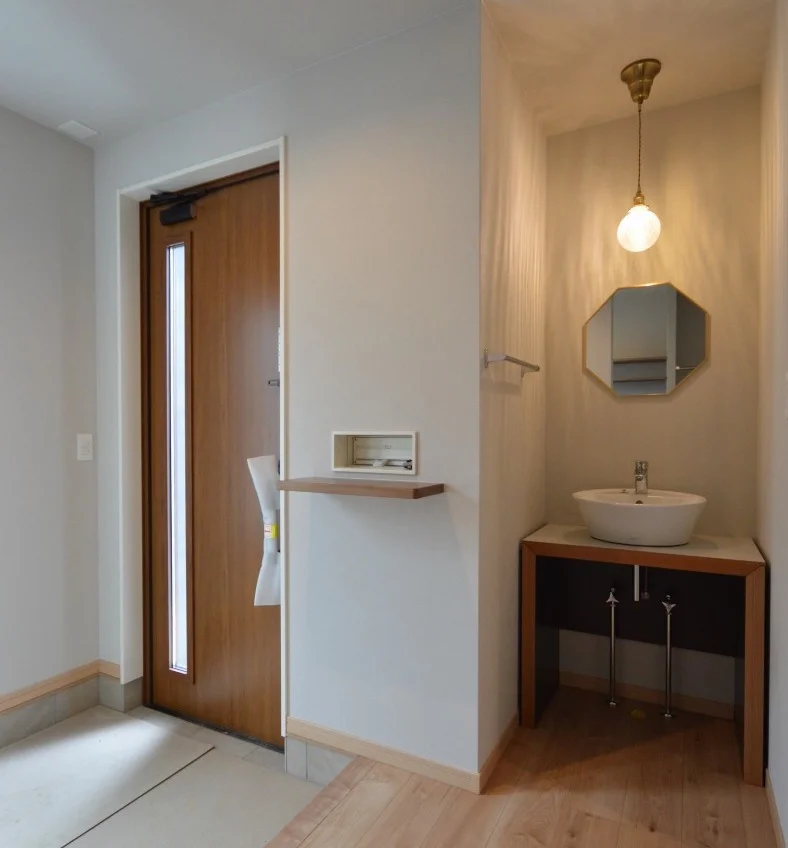また、風邪や感染症が心配な時も手洗いは必要です。手洗い場を玄関につくると、外から帰ってきた時すぐに手を洗うことができるので、家の中での感染リスクを減らせます。