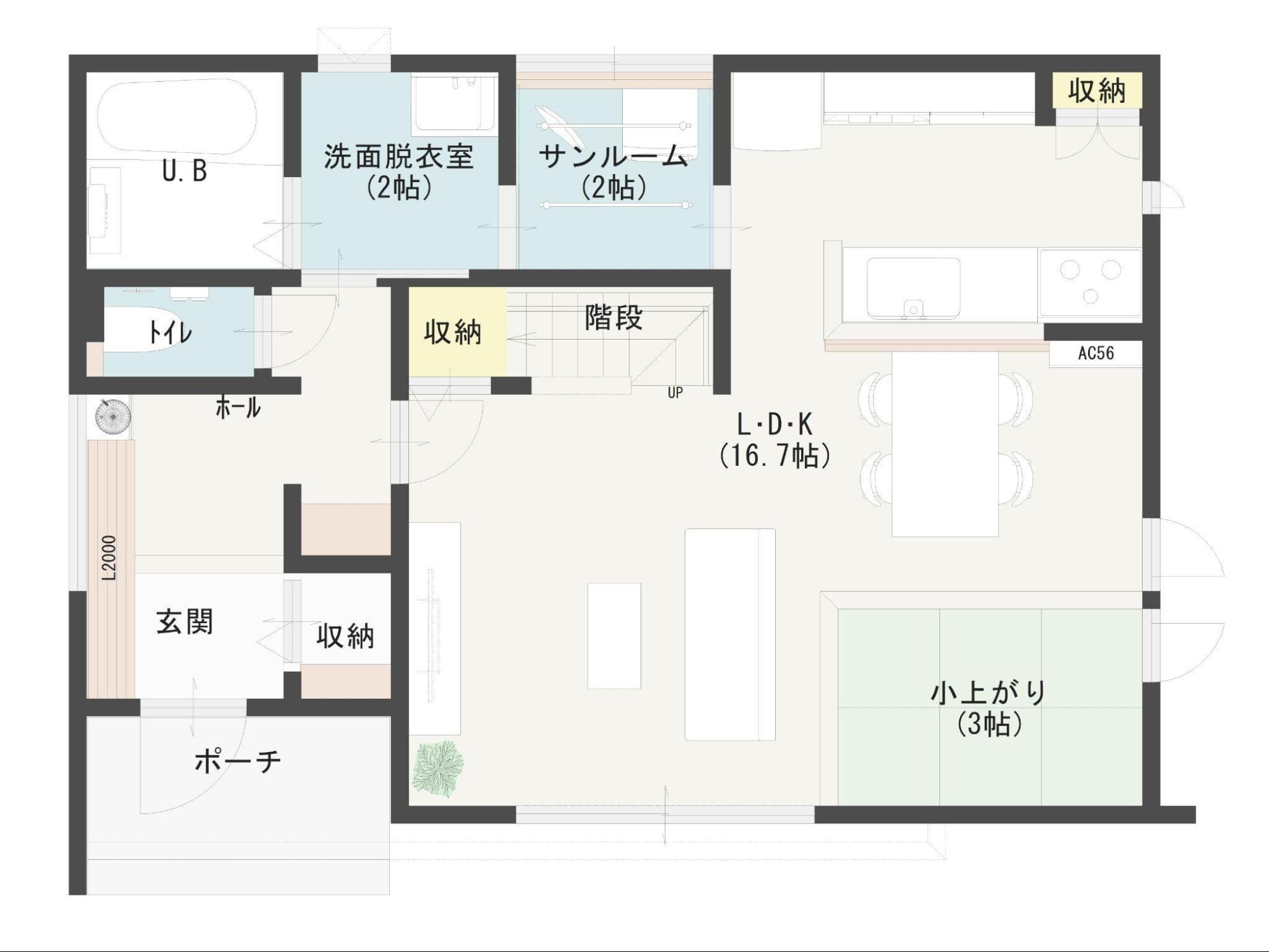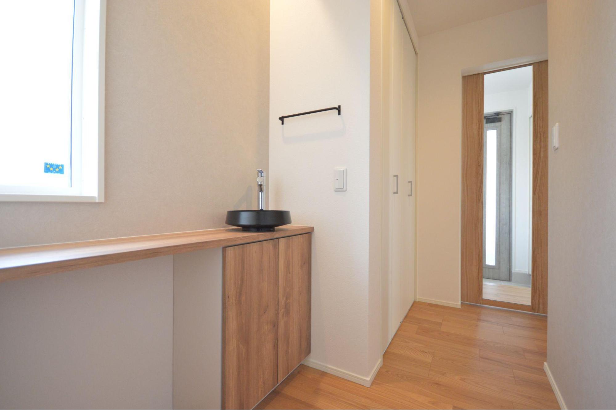 - シューズクローク内または玄関ホール直通の洗面スペース