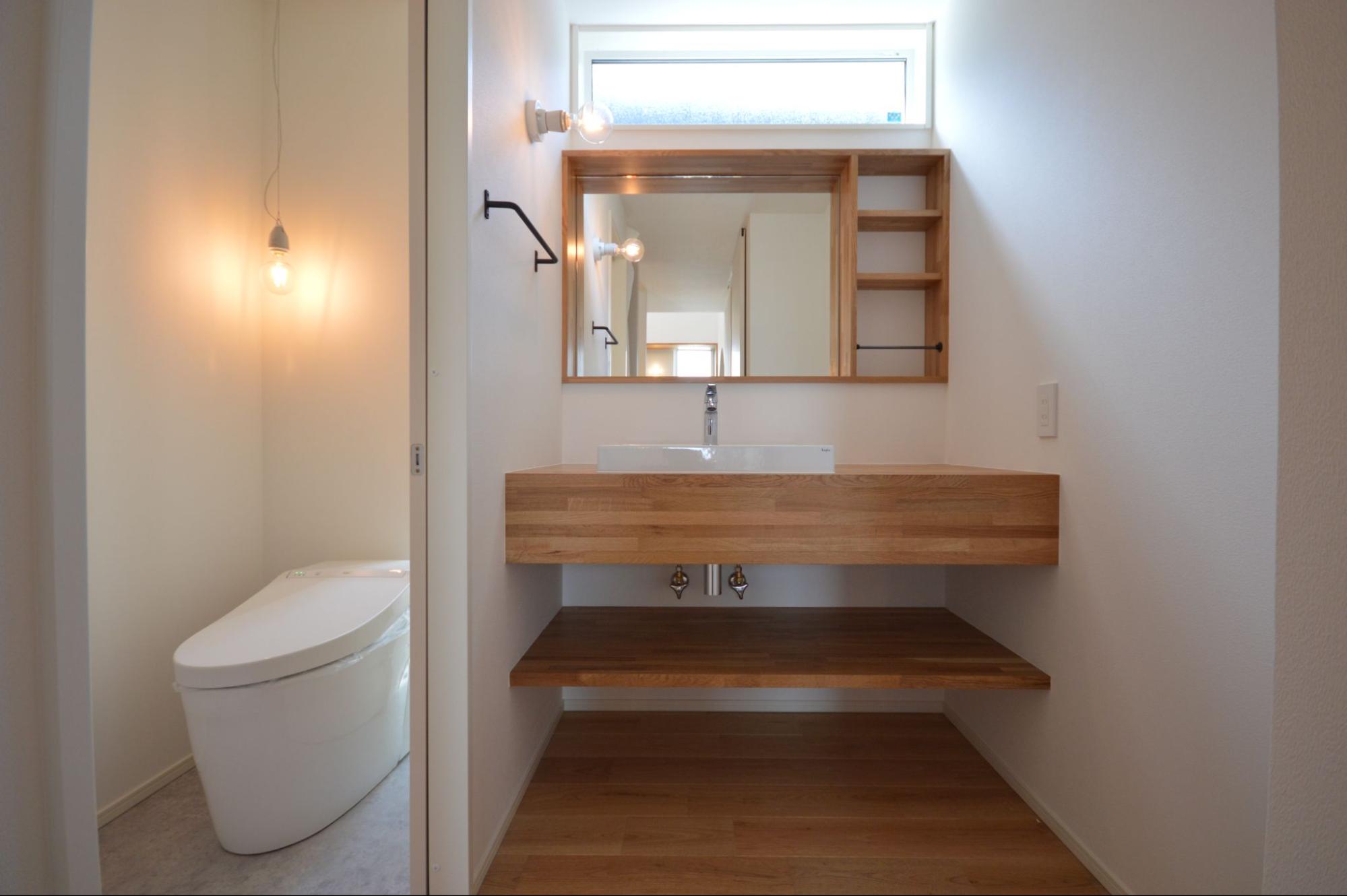床やカウンター、洗面台など、随所に自然素材を配置。心地よく、温かみのある雰囲気を演出しています。