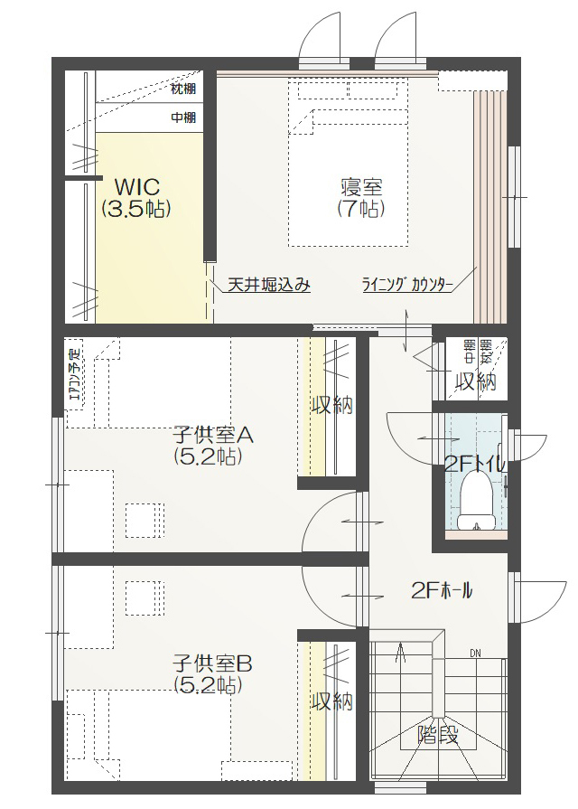 延床面積が37坪程度の場合、3LDKであればリビングを広くしたり、大きめのウォークインクローゼットを設置したり、さらに書斎を設けたりなど、ゆとりのある間取りにできます。