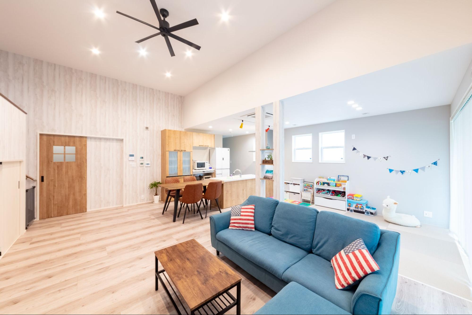 リビングには小上がりを設けて、空間にアクセントとくつろぎの場所をプラスしています。