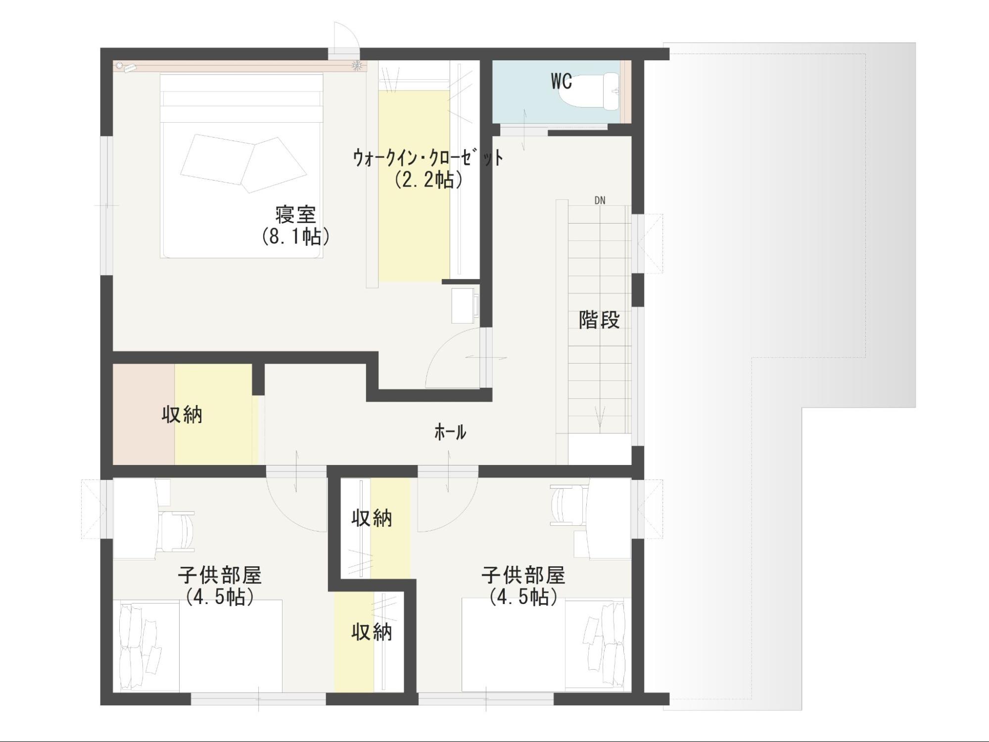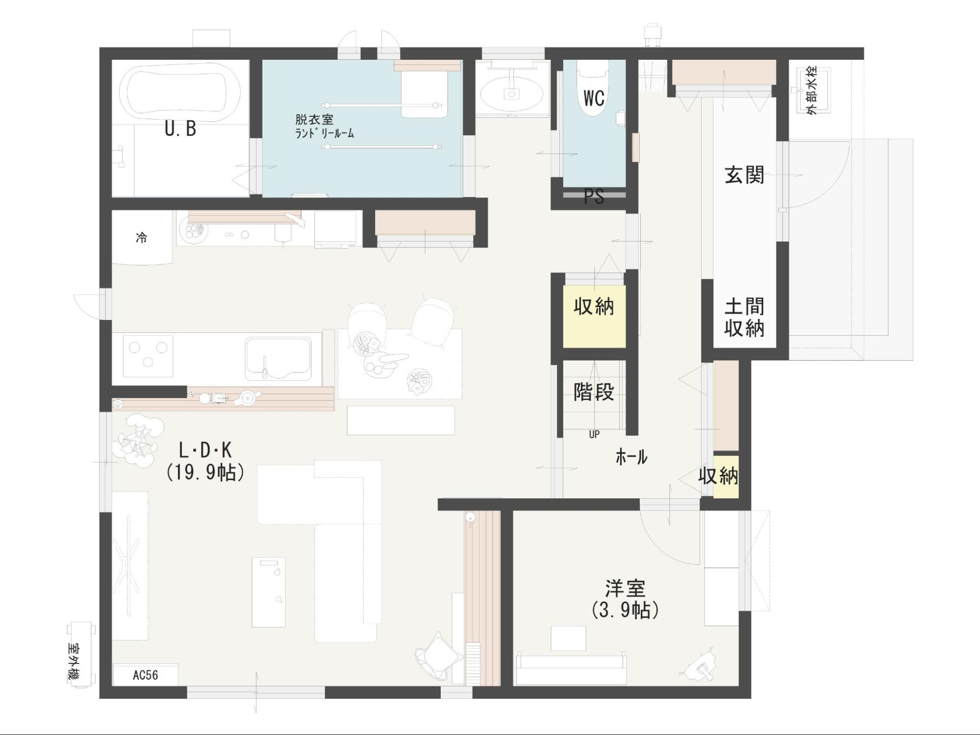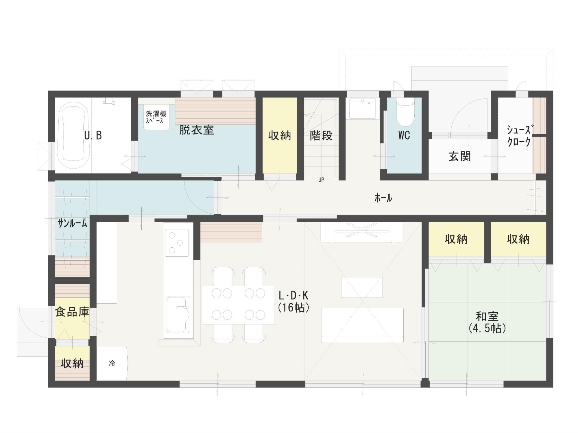家事動線を考慮した効率的な間取りに加え、収納スペースも充実。家族全員が快適に過ごせる工夫が随所に施されています。