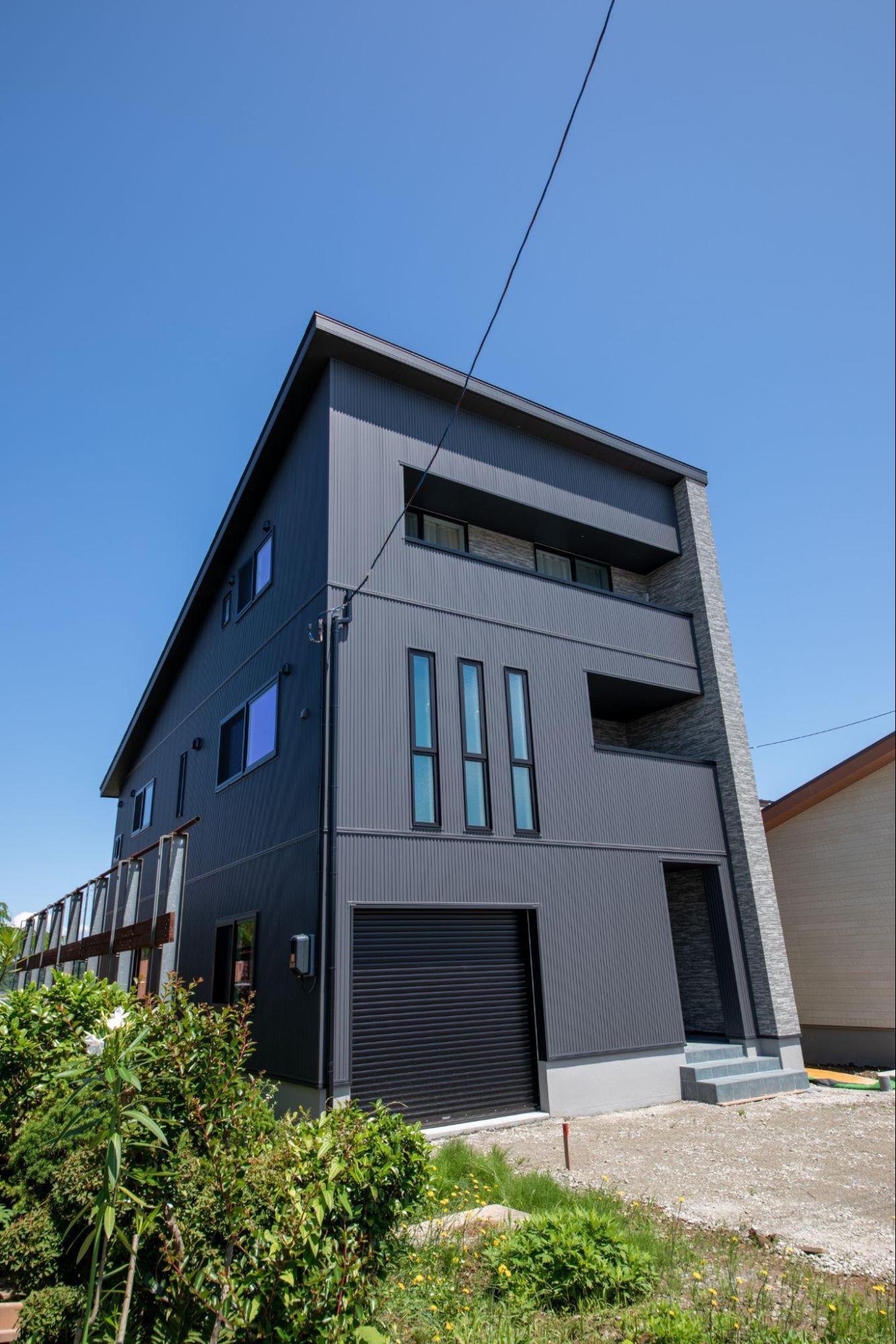 1階にビルトインガレージを設け、2階をリビング、3階を子供室にして、コンパクトな敷地でも広々とした空間を実現した事例です。