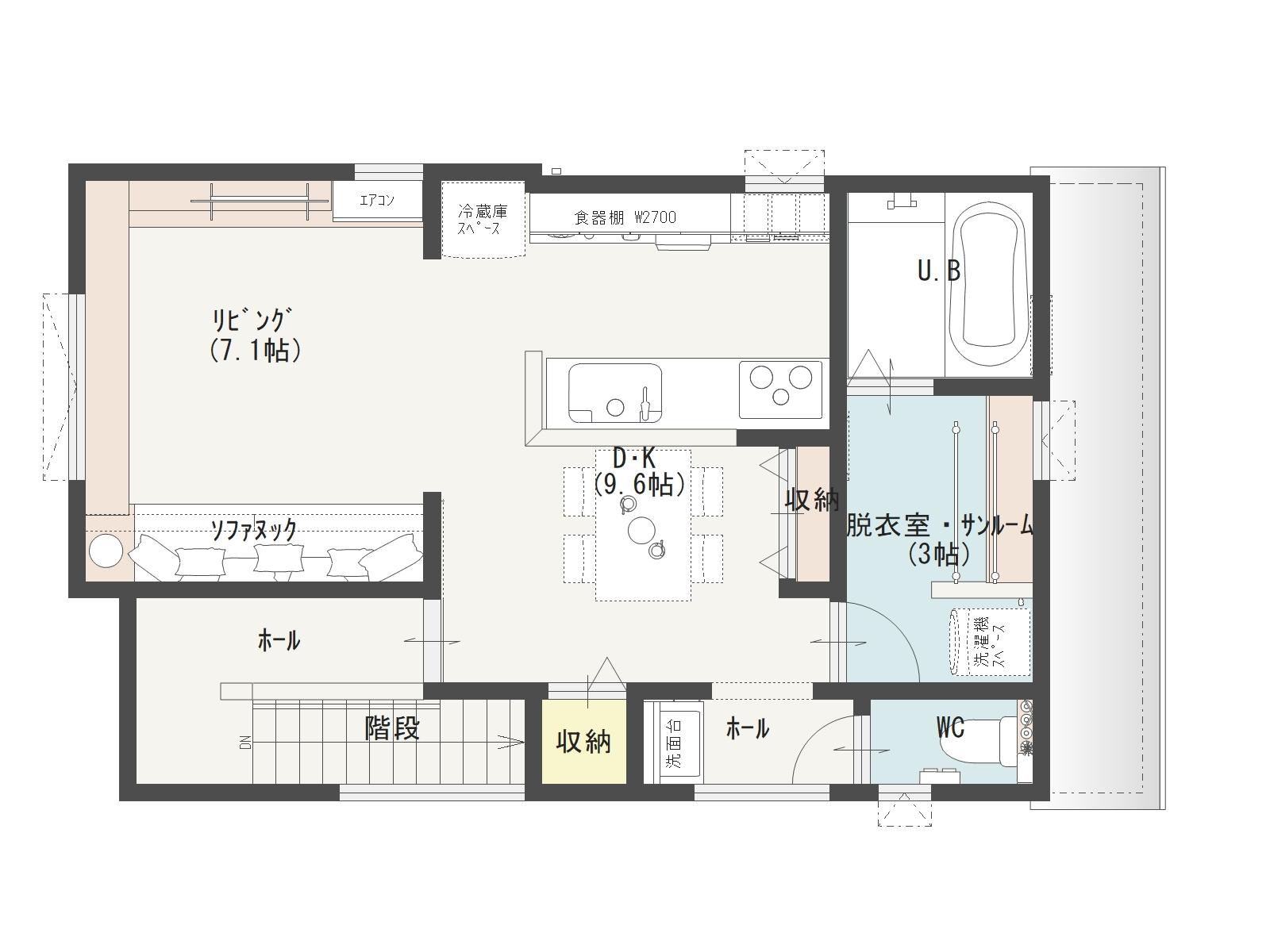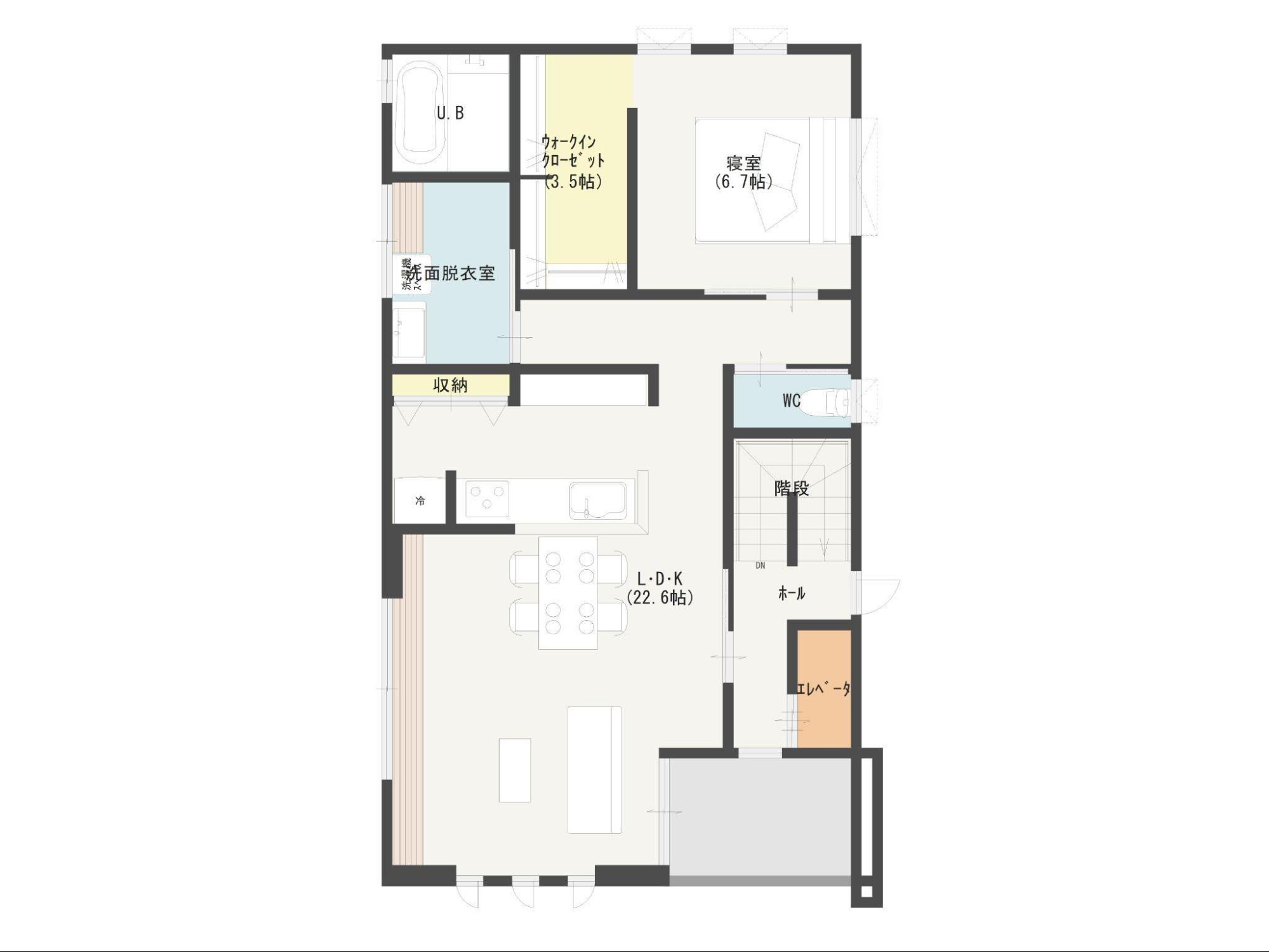 夫婦二人で新婚生活を始めたりする場合や、子育てが一段落して夫婦二人だけの暮らしになったときでも、、2階リビングは快適な間取りです。