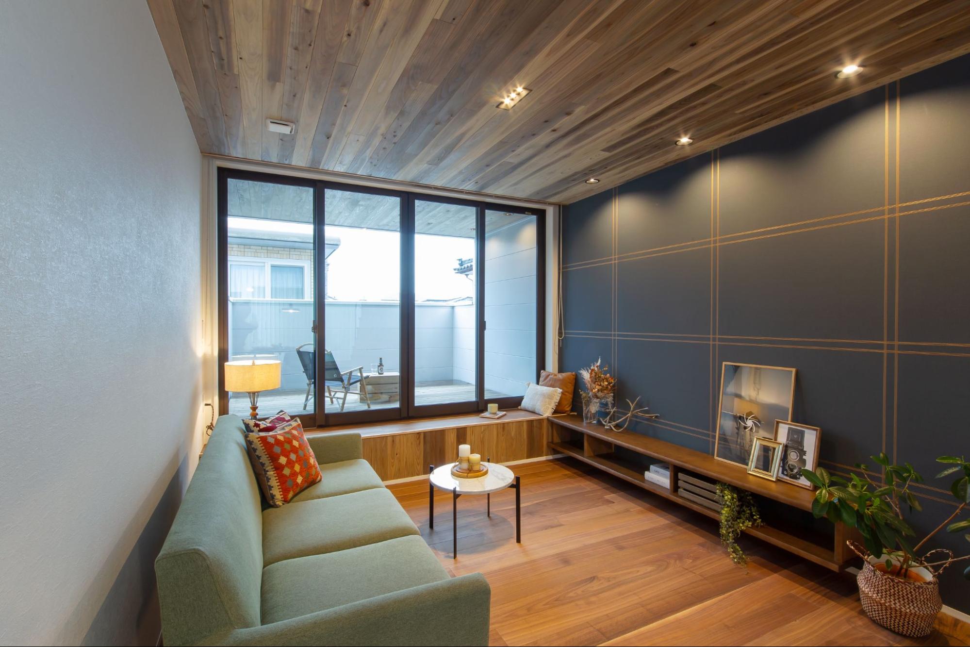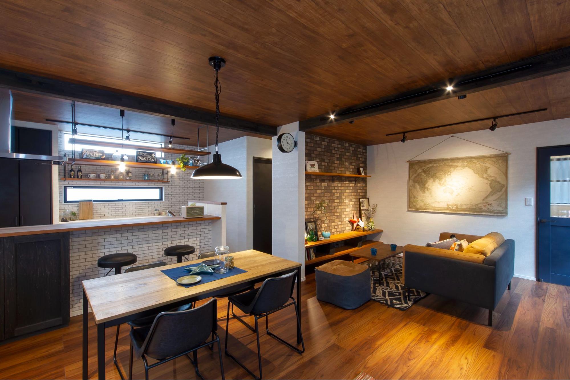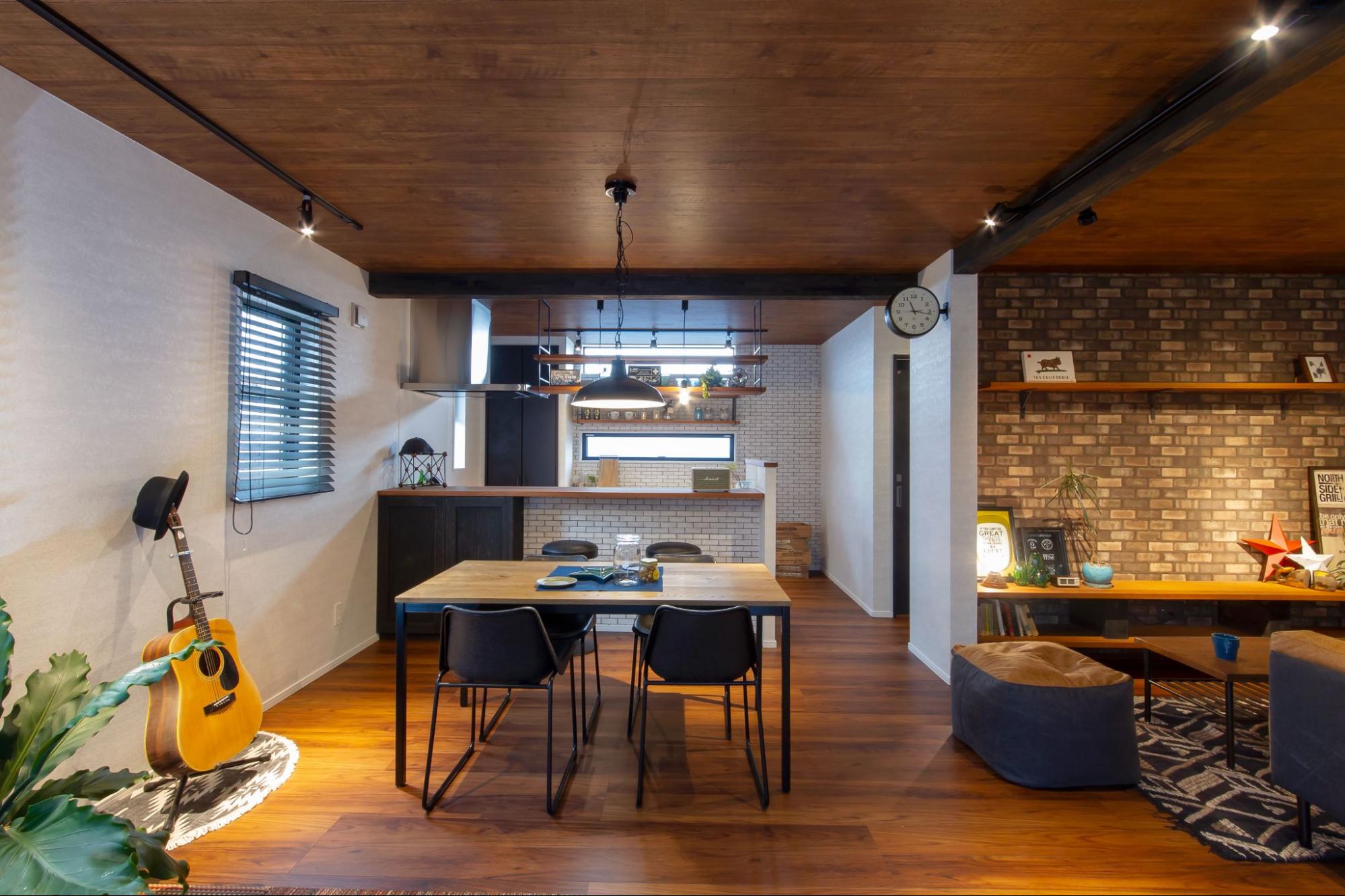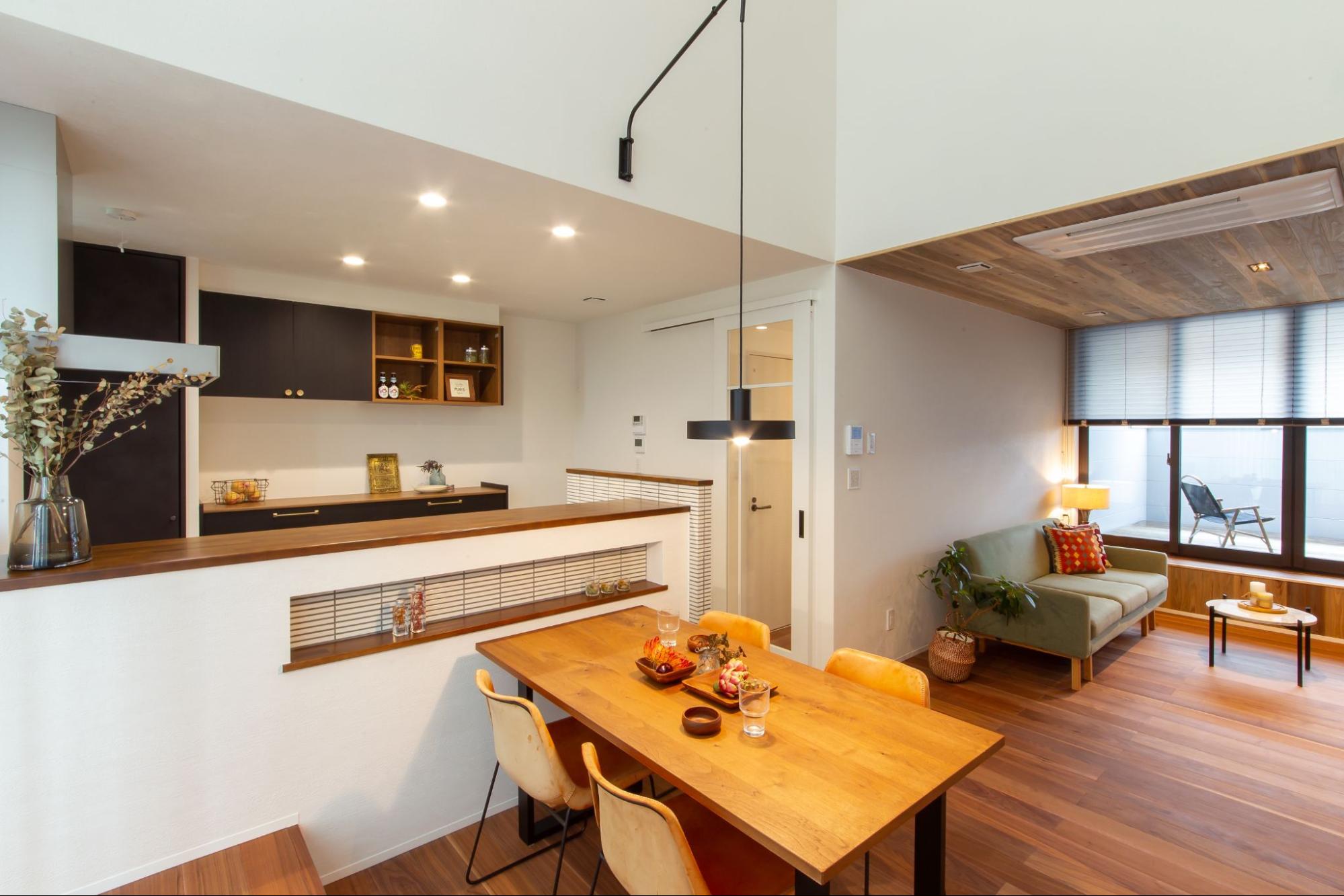 LDKはブルックリンスタイルとなっており、個性的でおしゃれな雰囲気。2階にリビングに配置することで、通行人の視線を気にせず、家族がリラックスできる快適な住まいとなっています。