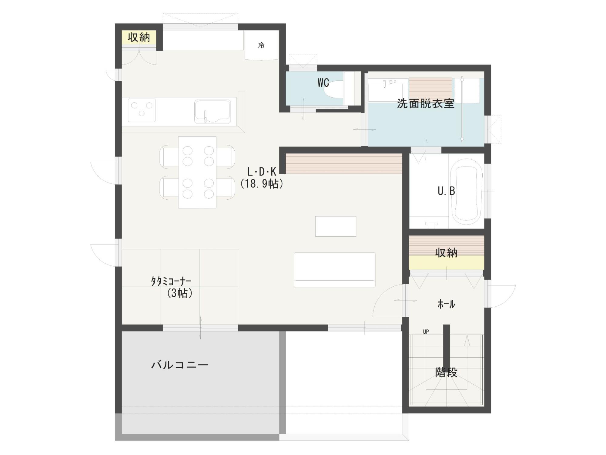 1階に土間収納を設けることで、アウトドア用品や自転車などをスッキリ収納可能。玄関周りを常に整えられます。