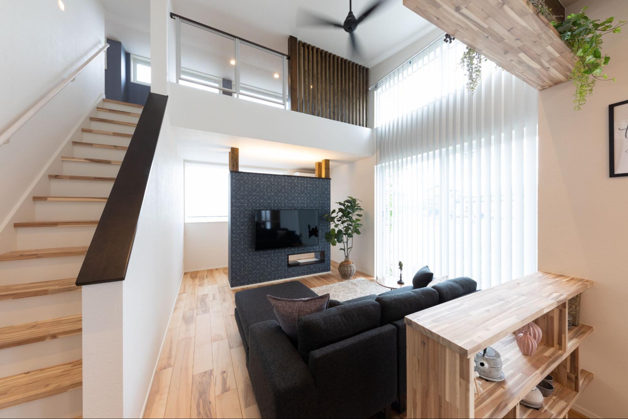 屋根裏からは一階の全体を見渡せるため、開放感があり、空間を縦に使うことで広々とした印象に。ローコストながら機能的で快適な生活が実現できる平屋の事例です。