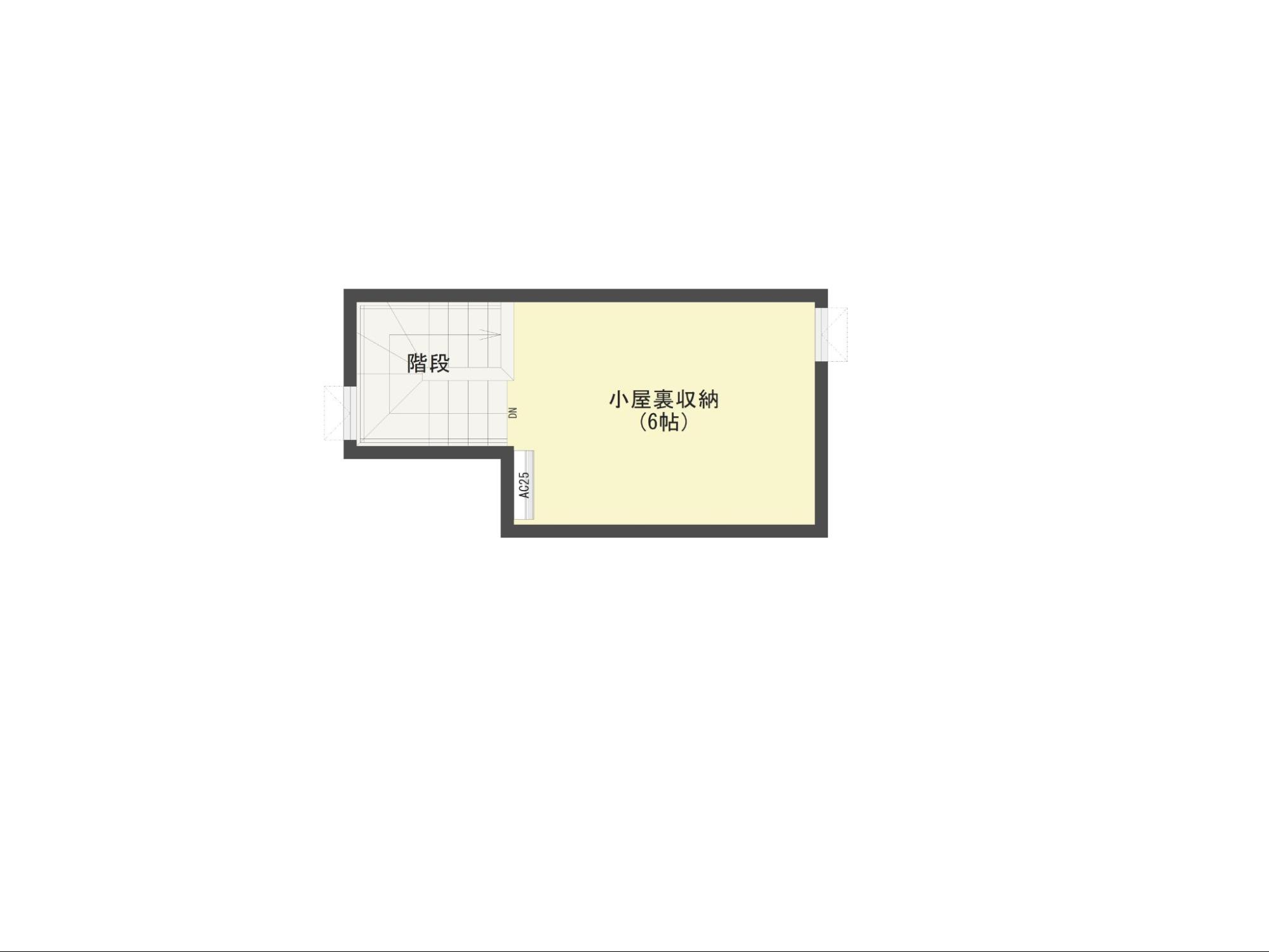 こちらは、総2階建てに加え、小屋裏収納を活用して空間を縦に広げたローコスト住宅の事例です。