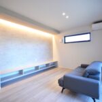 【リビング】造作TVボード&間接照明のあるリビングで映画鑑賞やお酒を楽しんだり…特別な時間を過ごせます^^