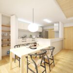 ・人気の横並びダイニングキッチン。W2700のカップボードにはお気に入りの家電もすべて納まります。