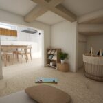 ■南面のスキップフロア+吹抜で明るい光が降り注ぐLDK空間へ。