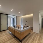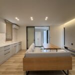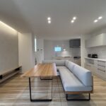 ● リビングにはオリジナルのテレビ台を造作、背後に間接照明を施しました。