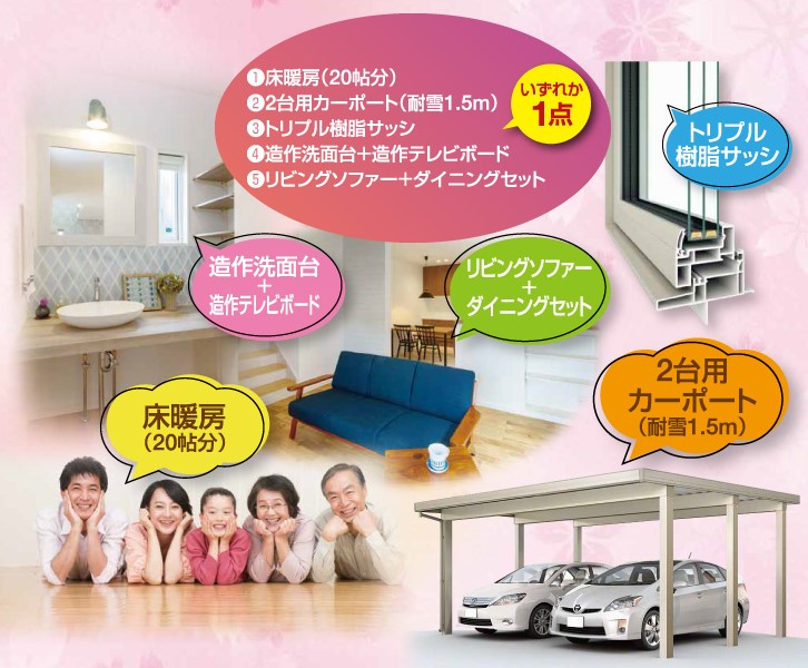 ご契約いただいたお住まいに上記コースを1つ無償で追加頂けます。